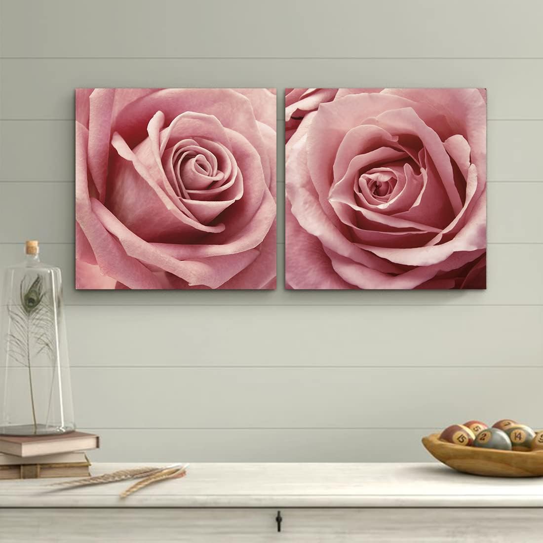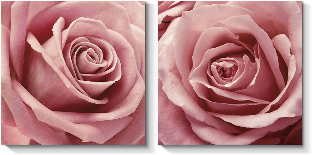 Romantic Bedroom Decor -- This pink rose pictures wall decor is 12" by 12" with 0.8" depth, easy to display, the painting print set adds a fresh and calming feel to your walls in the living room or bedroom.