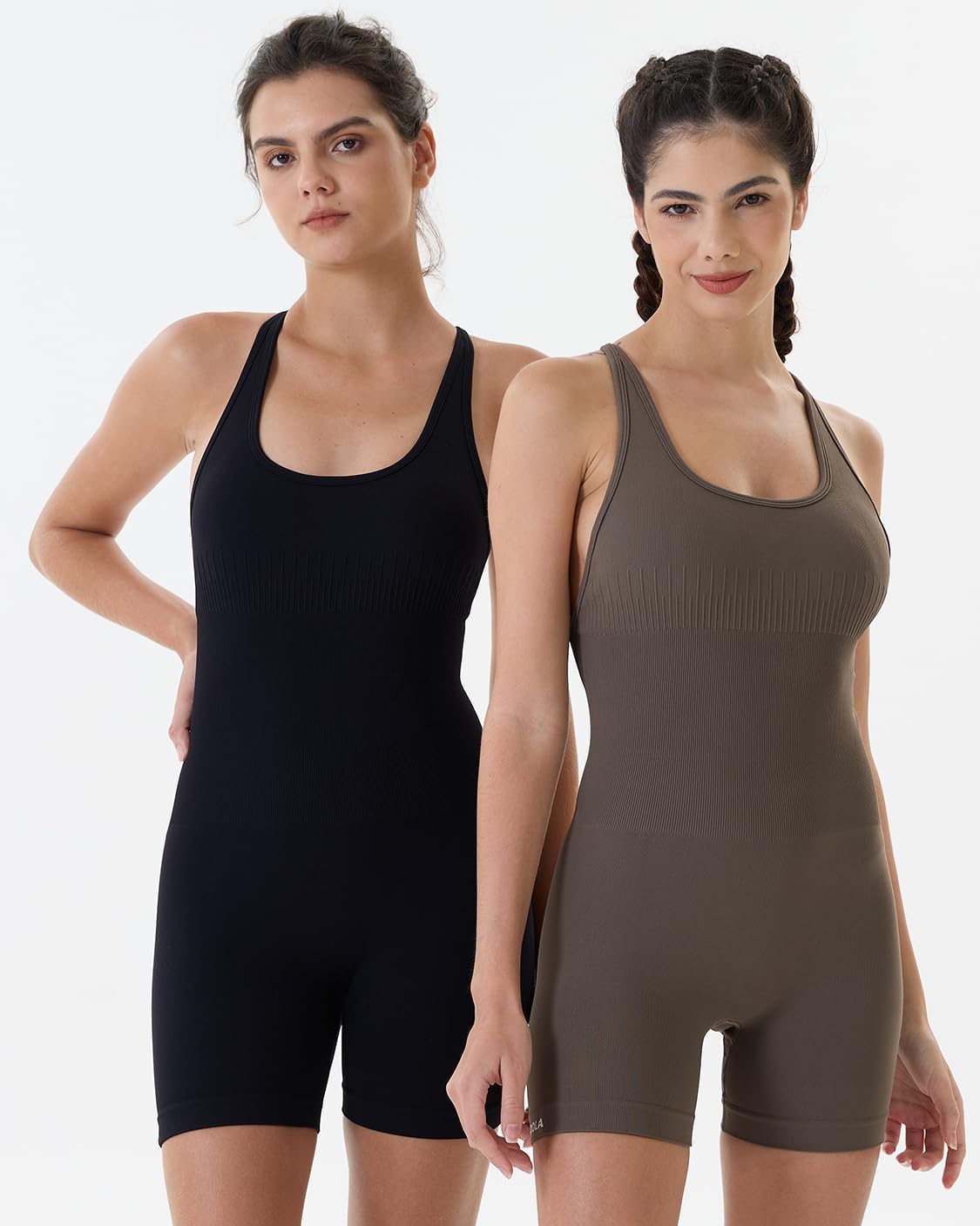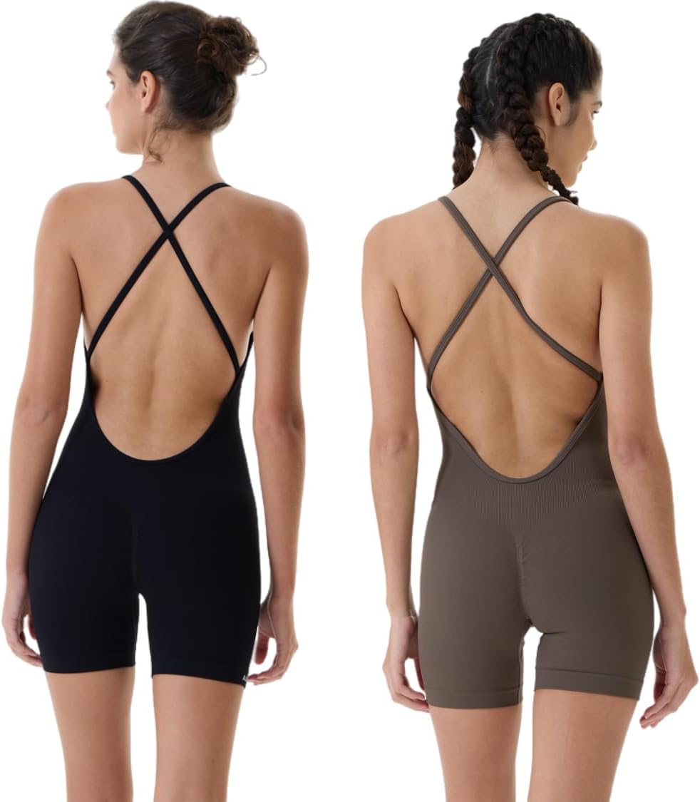 AUROLA Strapy Romper for Women Workout Yoga Gym Seamless One Piece Jumpsuit Tummy Control Padded Sports Bra