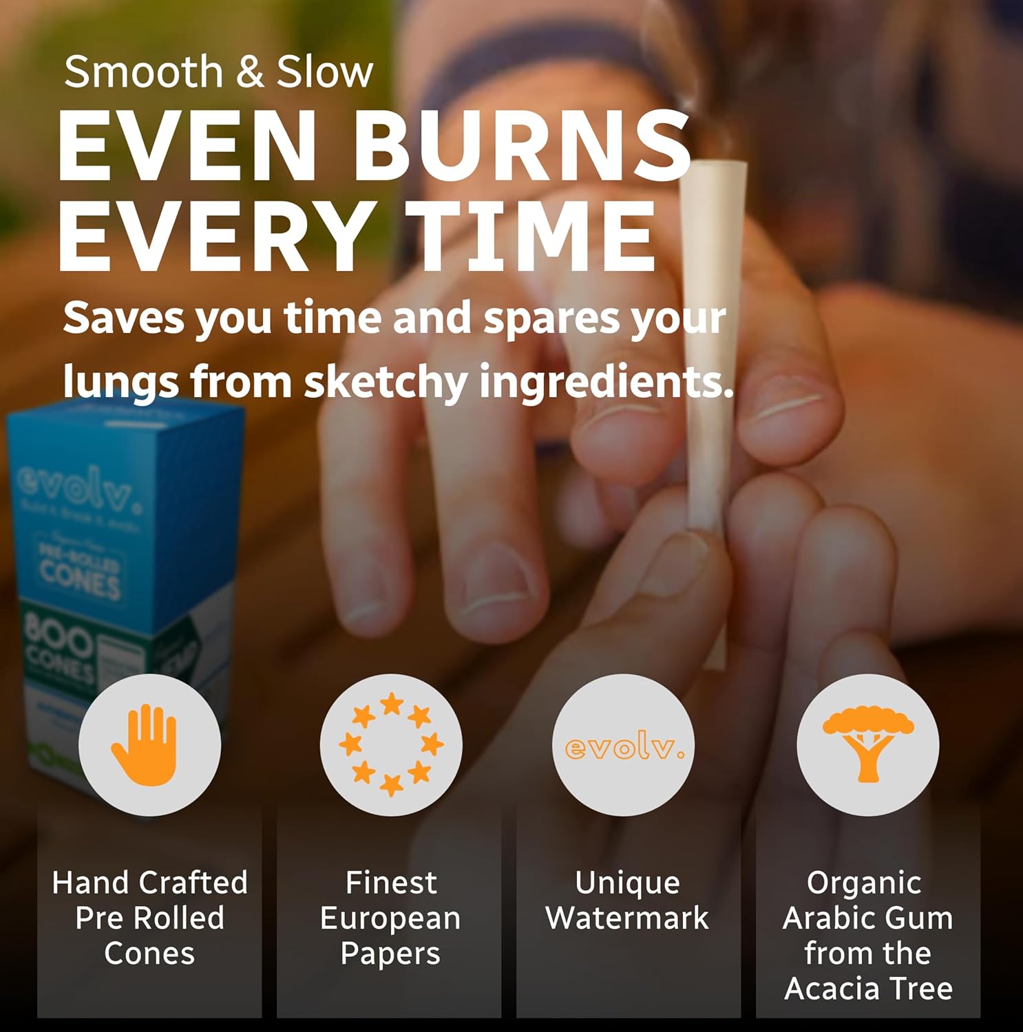 ✅ SKIP THE ROLL, JUST FILL & CHILL with Evolv's organic hemp pre-rolled cones. Say peace out to rolling and hello to easy fill-ups. Prep your session in a snap—no tobacco, no nicotine, just pure enjoyment.
