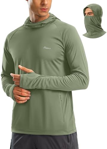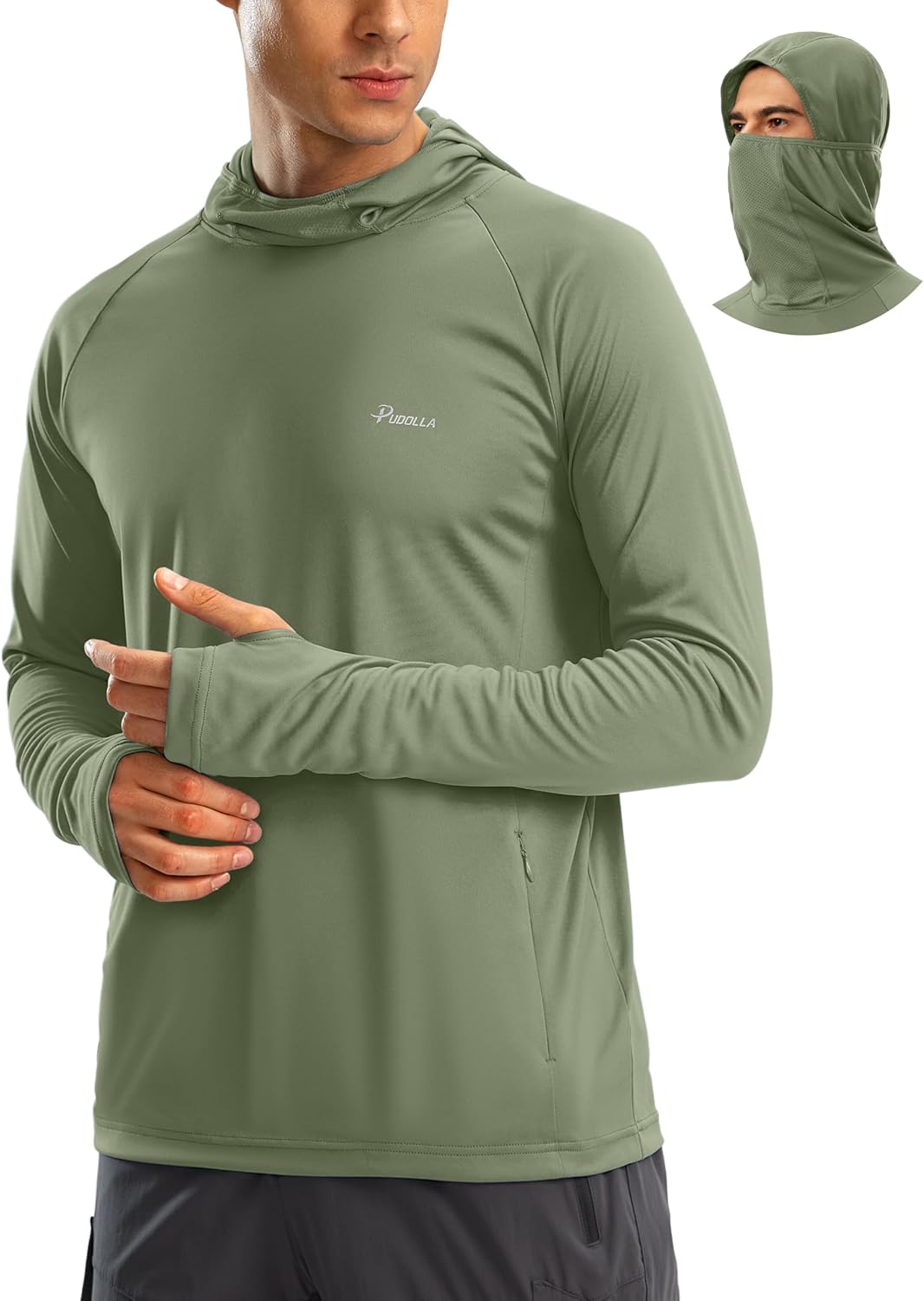Pudolla Men's Sun Protection Hoodie UPF 50+ Fishing Hiking Shirt UV Shirts with Mask for Men Long Sleeve Lightweight