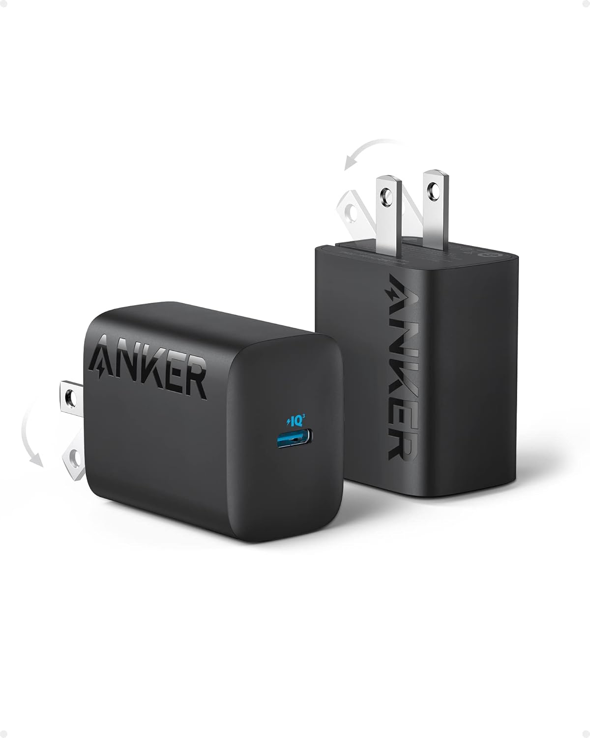 Cargador Anker 30W USB-C, Cargador 312 con Diseño Compacto y Plegable, Carga Rápida para iPhone 16/15 Series, Samsung S23, MacBook Air, Pixelbook, iPad Pro y Más (2 Unidades, Cable No Incluido)