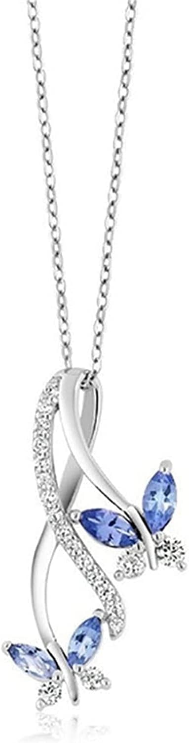 925 Sterling Silver Blue Topaz Butterfly Pendant Necklace For Women Jewelry Gift