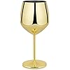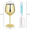 Lifecapido Stainless Steel Wine Glasses, 18oz Stainless Steel Wine Goblets, Stemmed Metal Wine Glasses with Cup Brush for Party Office Wedding Anniversary, Great for Red White Wine (Gold)
