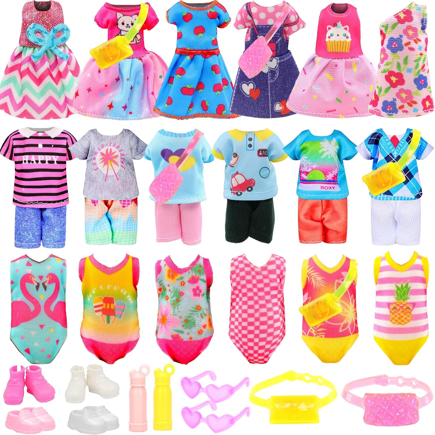 22 Pcs Mini 5 inch Doll Clothes and Accessories Including 4 Sets Fashion Dresses 4 Casual Tops and Pants Outifits 4 Swimsuits with 4 Shoes 2 Glasses 2 Shoulder Bag for 5-5.3 Inch Dolls