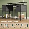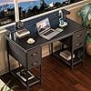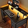Huuger 47 inch Computer Desk with 4 Drawers, Gaming Desk with LED Lights & Power Outlets, Home Office Desk with Large Storage Space for Bedroom, Work from Home, Black