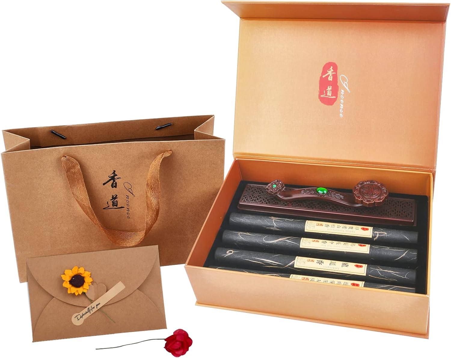 Palitos de incienso naturales: Nuestro set incluye cuatro palitos de incienso naturales sin aditivos, cada uno pesando 10g. Disfrute del aroma relajante del sándalo, trayendo relajación y tranquilidad a su hogar.