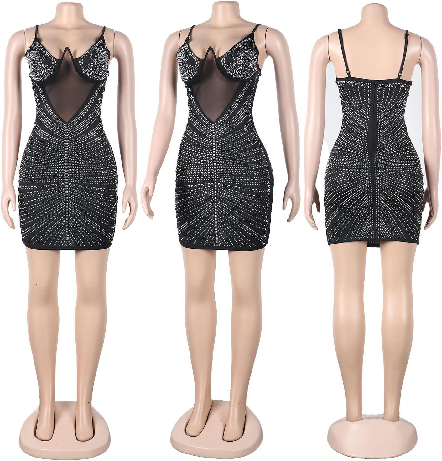 88% poliéster, 12% elastano Importado Cierre con cremallera Material: el vestido de strass para mujer está fabricado con tecnología de perforación en caliente, lo que hace que la textura sea más suave y cómoda. La sensación flácida de la falda hace que las mujeres caminen con más confianza y encanto. Estilo: sin espalda, tirantes finos, minivestido, elegante y estilizado. Función: Si necesitas un atuendo que te acompañe en fiestas, discotecas, salidas nocturnas, bares, citas, cumpleaños, etc., con una textura elástica que muestre tus curvas, ese es Nagfar. Ropa: el verano se puede combinar con leggings, el invierno se puede combinar con tacones altos, bufandas, abrigos, chaquetas de plumas o un chaquetón. Consejos: elige la talla según la guía de tallas de la descripción del producto. Si te gusta llevar ropa holgada, elige una talla más grande. Si tienes alguna pregunta, no dudes en ponerte en contacto con nosotros.