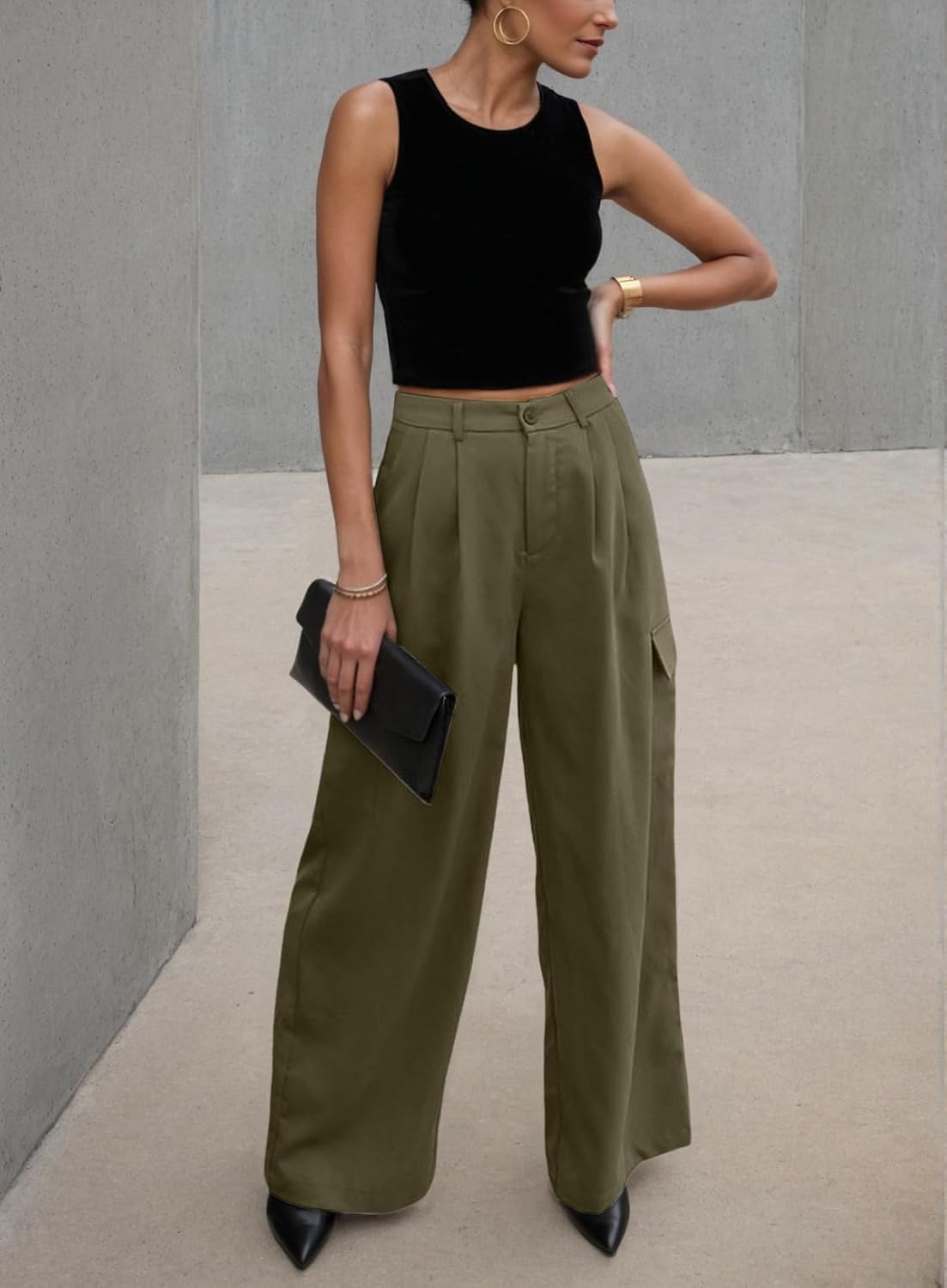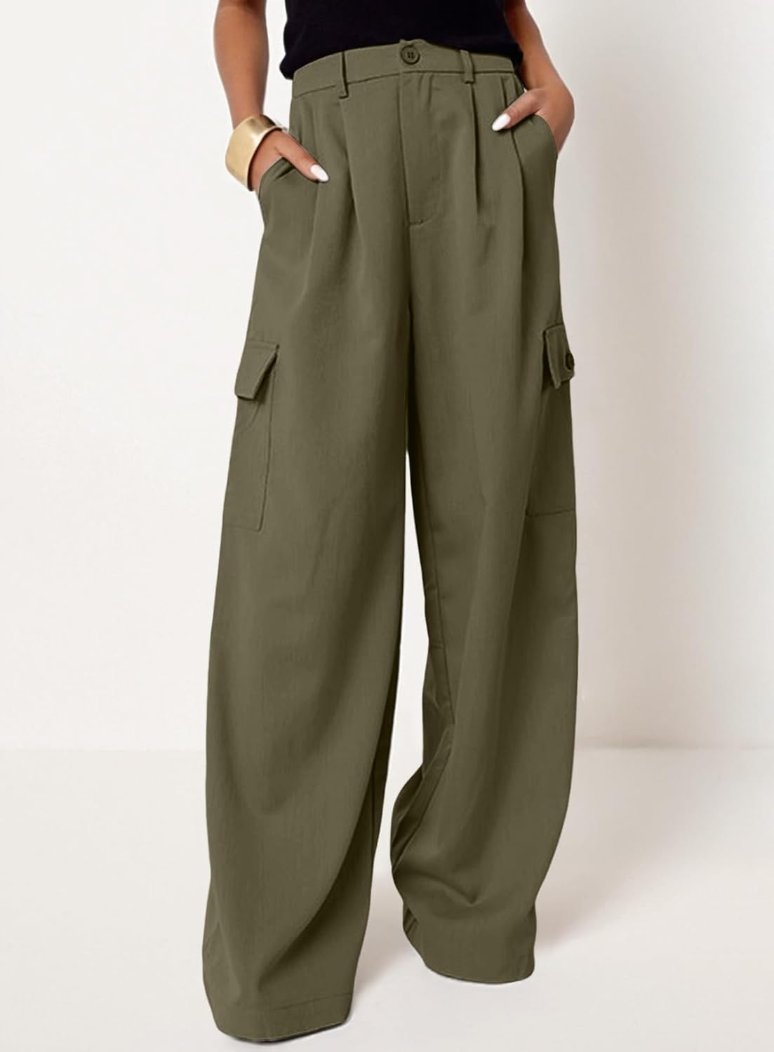 Dokotoo Womens High Waisted Wide Leg Cargo Pants Baggy Casual Trendy Work Pants with 4 Pockets