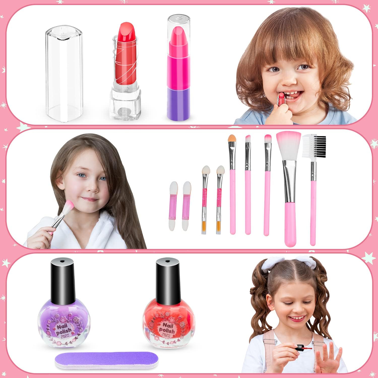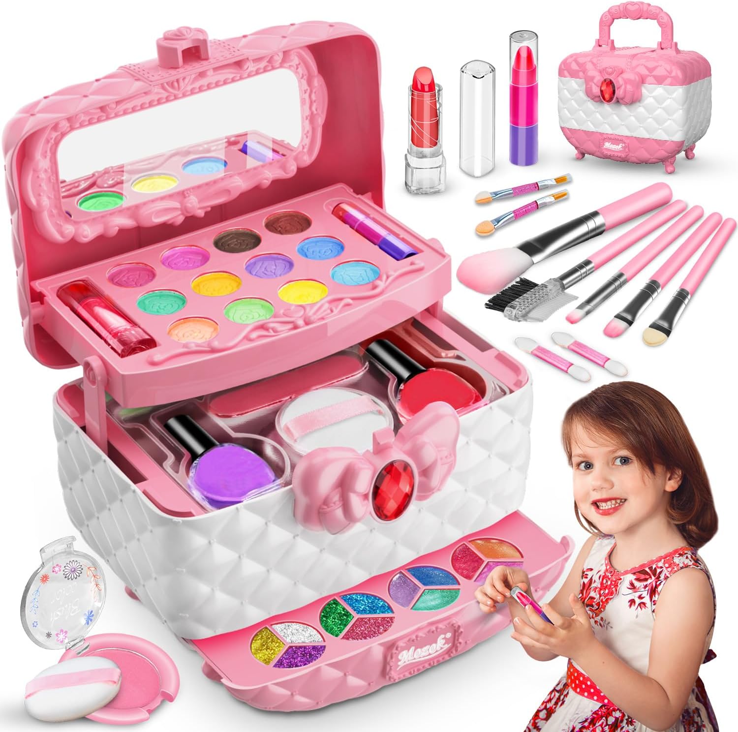 Kit de Maquillaje para Niñas, Set de Belleza Pretend Washable, Estuche de Cosméticos Real para Niñas Pequenas, Maquillaje Seguro y No Tóxico para Niñas de 3 a 12 Años, Regalos para Niñas Pequeños