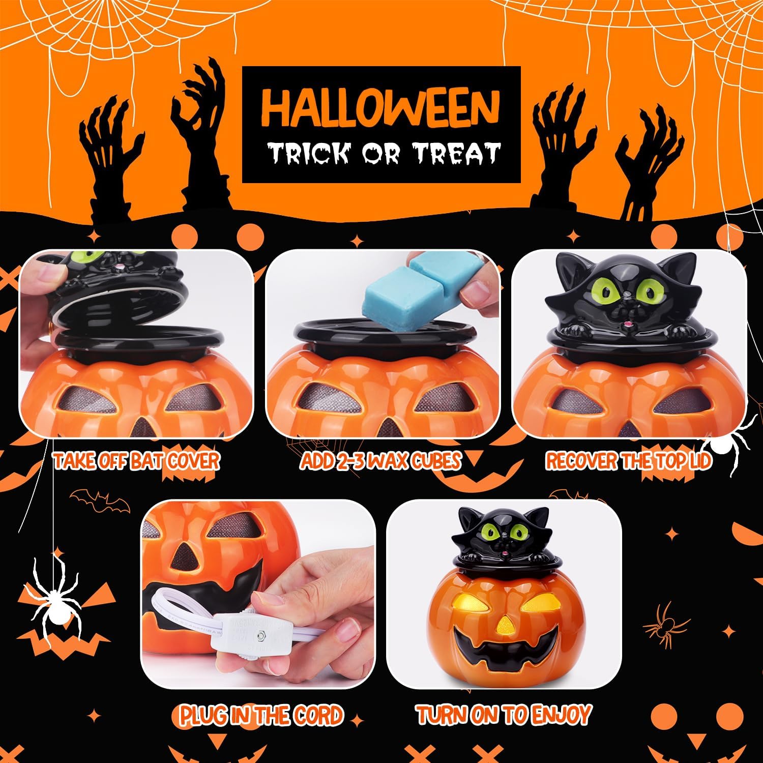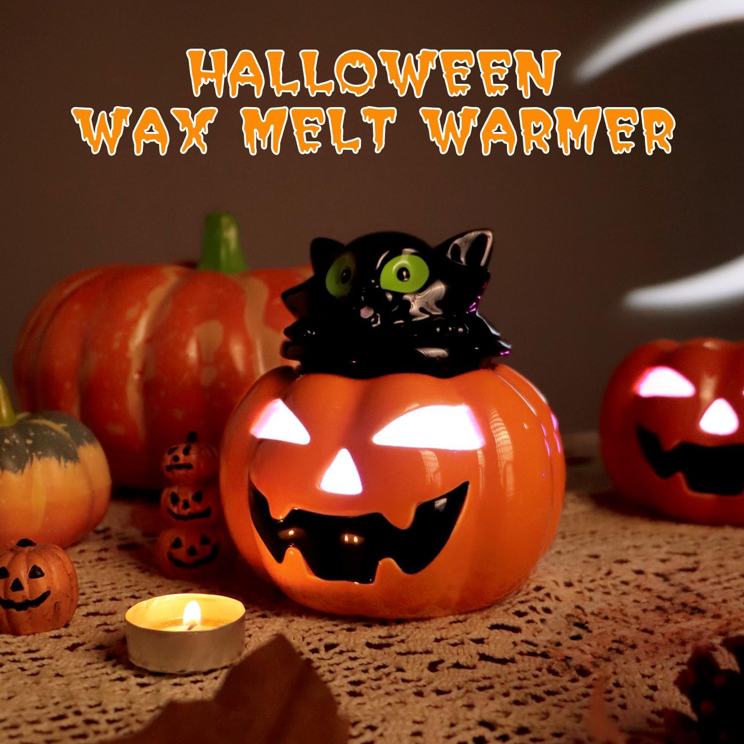 Ideal para añadir ambiente a tu sala de estar, dormitorio u oficina, este calentador de cera de Halloween también es un regalo perfecto para los amantes de Halloween o cualquiera que disfrute crear un ambiente acogedor con aromas de temporada. ¡Abraza el espíritu de Halloween con este encantador y funcional calentador de cera!
