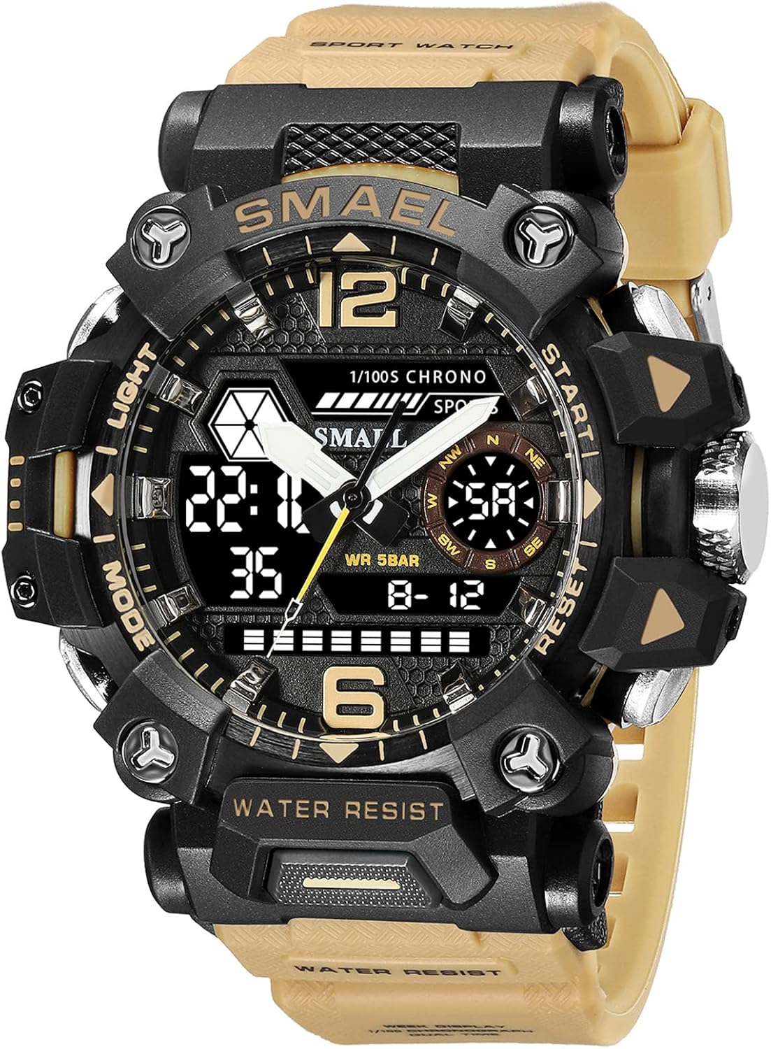 AIMES Mens Watches Sports Outdoor Waterproof Military Watch for Men Tactical Watch Analog Digital Date Alarm Stopwatch Multi-Function Tactics Big Face Wristwatch for Men