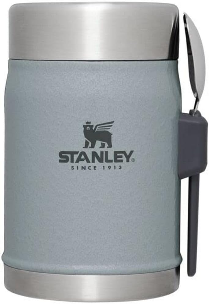 Stanley Jarra y Cucharón Clásico para Comida 14 oz | Termo de Comida Aislado al Vacío | Tapa de Rosca de Boca Ancha | Empaquetable para Viajar | Acero Inoxidable con Tapa a Prueba de Fugas | Libre de BPA | Plata Tono Martillo