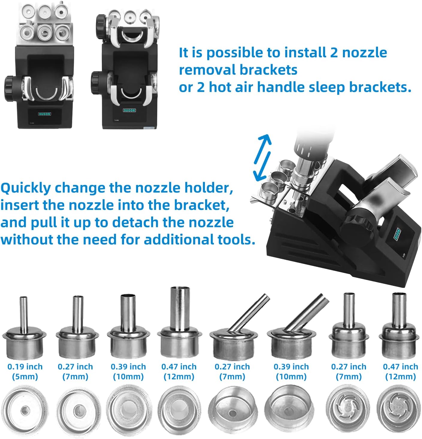 MULTIPLE NOZZLES: 8 different nozzles to meet a variety of maintenance needs, with a quick replacement nozzle bracket, no need to use other tools to quickly disassemble the nozzle, with a silicone nozzle storage bracket, can accommodate 5 nozzles.