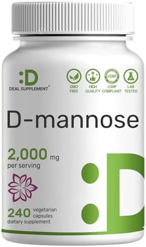 SUPLEMENTO DE OFERTAS D Manosa 500mg Cápsulas (2,000mg Por Porción), 240 Cápsulas Vegetarianas – Forma Hidrosoluble de Actuación Rápida – Soporte de Fuerza Extra para la Salud del Tracto Urinario (ITU) – No OGM, Apto para Veganos