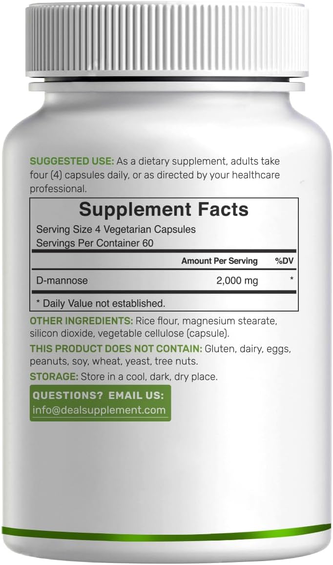 Propósito – La D-Manosa de Deal Supplement está elaborada con polvo de D-Manosa hidrosoluble y sin adulterar para asegurar una rápida absorción en el cuerpo que minimiza cualquier desperdicio, promoviendo acciones de lavado rápido al realizar sus funciones beneficiosas.