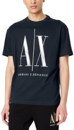 A|X Armani Exchange Men's metallic A|X Icon logo crew neck tee. Regular fit and breathable cotton, perfect for everyday wear.