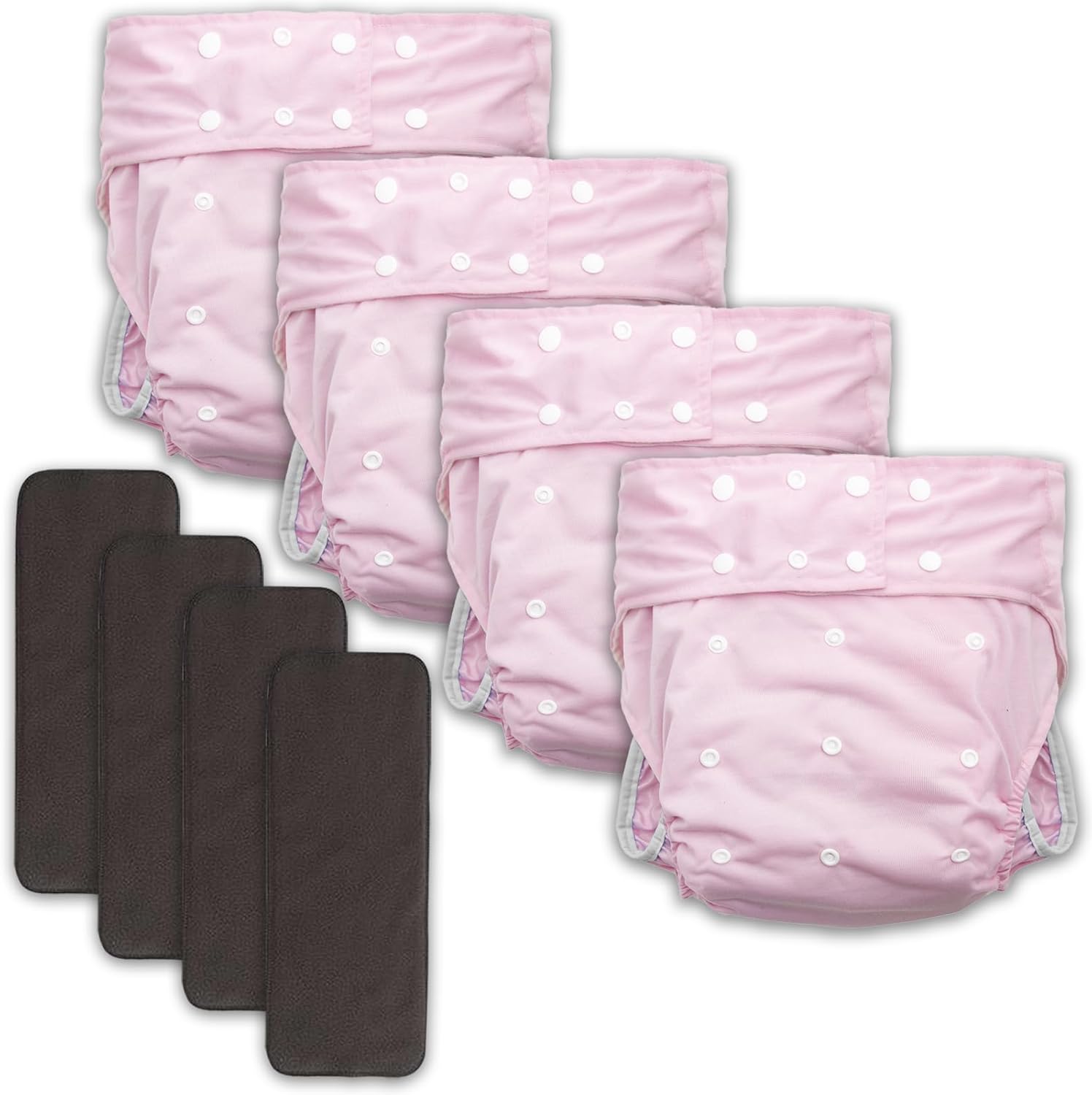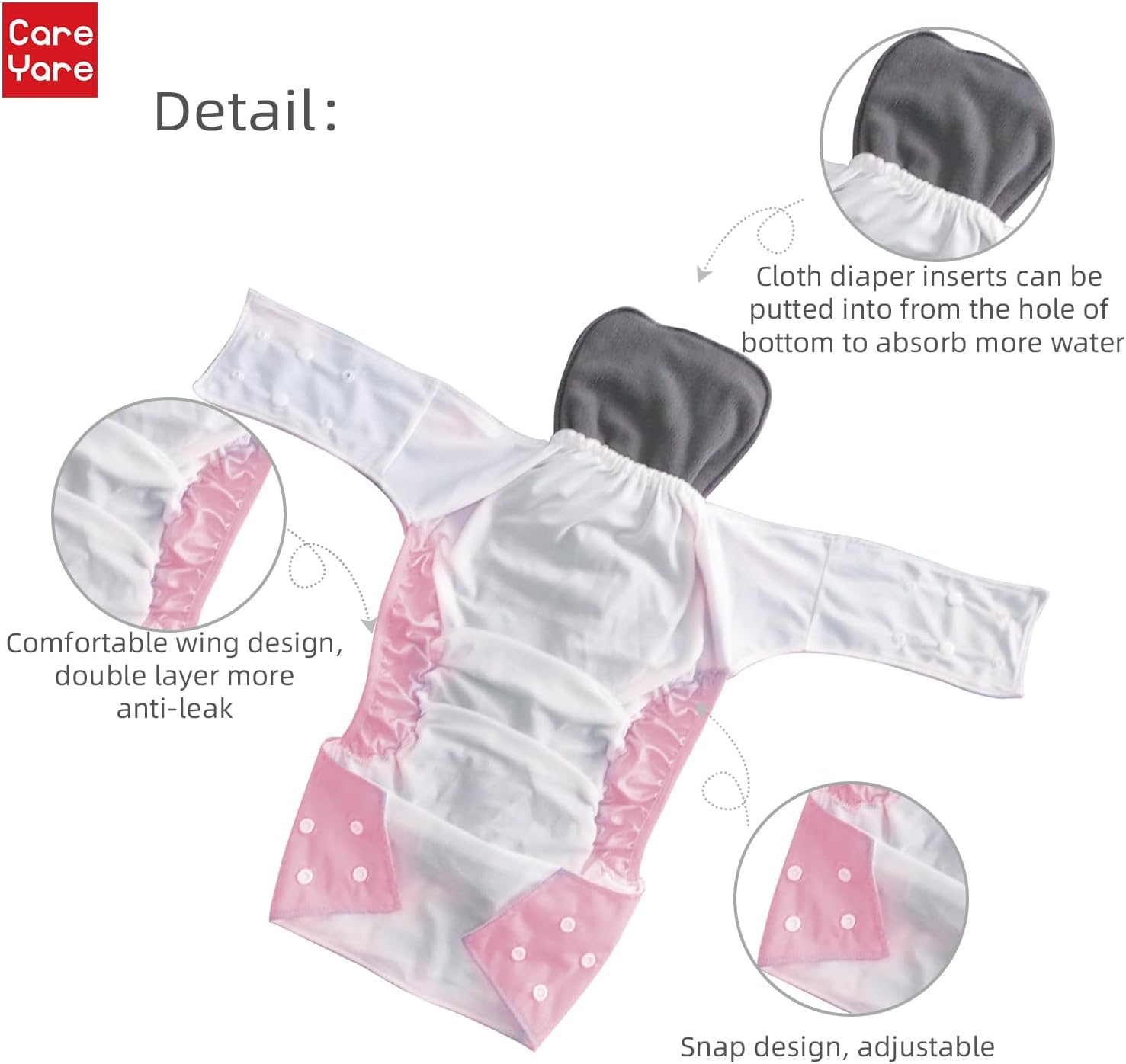 [Adjustable] At Care Yare,We Understand That Incontinence Can Be A Challenging And Sensitive Issue. We Know And Understand The Embarrassment Of Postpartum Incontinence Of Mothers.That's Why We Offer A Range Of Incontinence Underwear That Are Not Only Comfortable And Effective,But Also Discreet And Easy To Use. Adult Diapers Women Postpartum Size Can Be Adjusted Freely To Suit Your Size. Waist Circumference: XS(21in-23in) to XXL(43in-50in). 4 Pairs Pink Adult Diapers With 4 Pairs Diaper Inserts