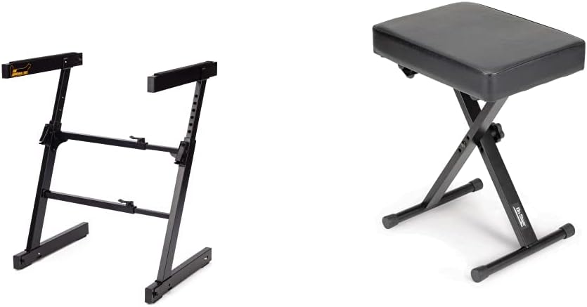 Hercules KS400B Autolock Z Keyboard Stand,BlackThe Hercules KS-400B Z-Stand Keyboard Stand is sturdy and strong enough for any kind of gig or life on the road. The Hercules KS-400B Z-Stand Keyboard Stand has a built-in AutoLock System which allows you to set the desired height by simply raising the arms with height parameters of 23.8"-36.6", and you can also adjust the width from 20"-33.5". Cleverly placed fluorescent marks on the KS-400B allows you to adjust both arms evenly, even on a dark stage! The Hercules KS-400B Z-Stand Keyboard Stand has locking pins for a secure and stable setup and adjustable rubber feet for fine tuning and leveling. The Hercules KS-400B Z-Stand Keyboard Stand is constructed to be a single unit so that there are no parts to keep track of or lose. Features Height: 23.8"-36.6" Width: 20"-33.5" Weight: 17.6 lbs. Load capacity: 286 lbs. Folded size: 30" x 21" One-piece design folds up compactly Locking pins for quick and secure set ups Adjustable rubber foot for fine tuning and levelingOn-Stage KT7800+ Bench, BlackDesigned for ergonomic playing, our KT7800 Three-Position X-Style Keyboard Bench features a soft yet firm seat cushion that delivers outstanding comfort and support. The exceptionally stable base adjusts in height to accommodate a variety of playing styles. The base also folds flat for convenient storage and transportation.Our top-of-the line keyboard bench has no equal! The design combines a 2.5" cushion, providing extra comfort for hours of play, with a spring-loaded double deadbolt locking system, providing extra safety for peace-of-mind.
