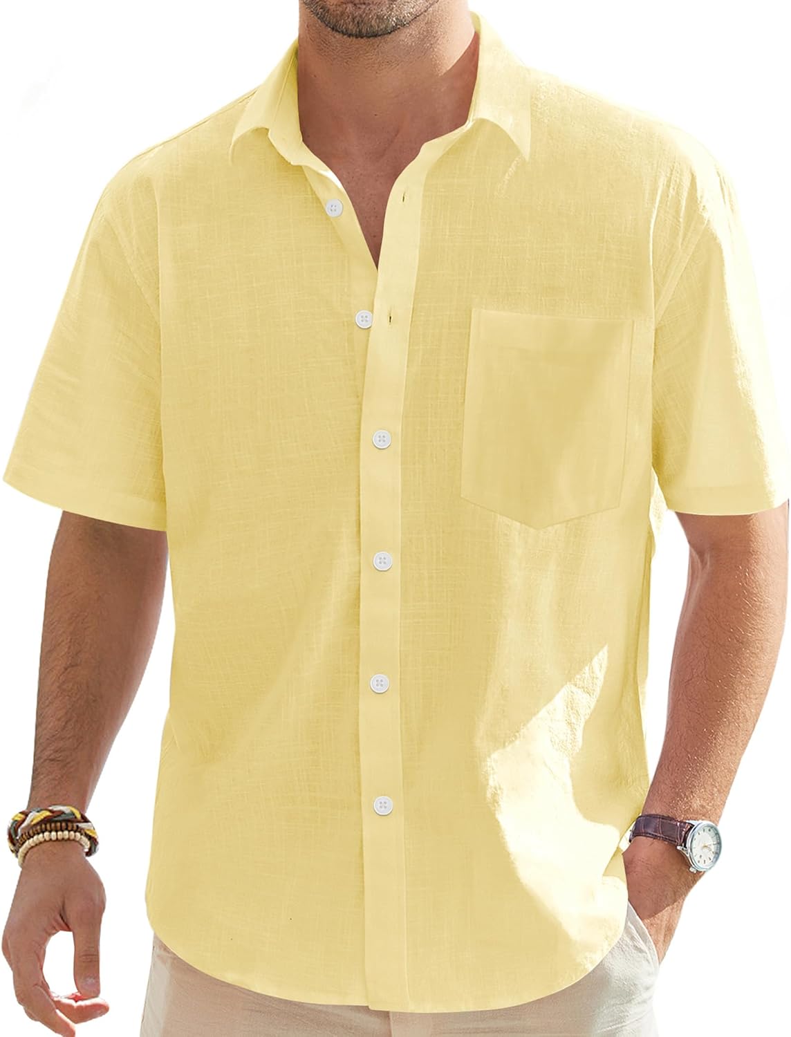 J.VER Men's Linen Short Sleeve Shirts Cotton Casual Lightweight Button Down Shirt Beach Vacation Summer Tops with Pocket