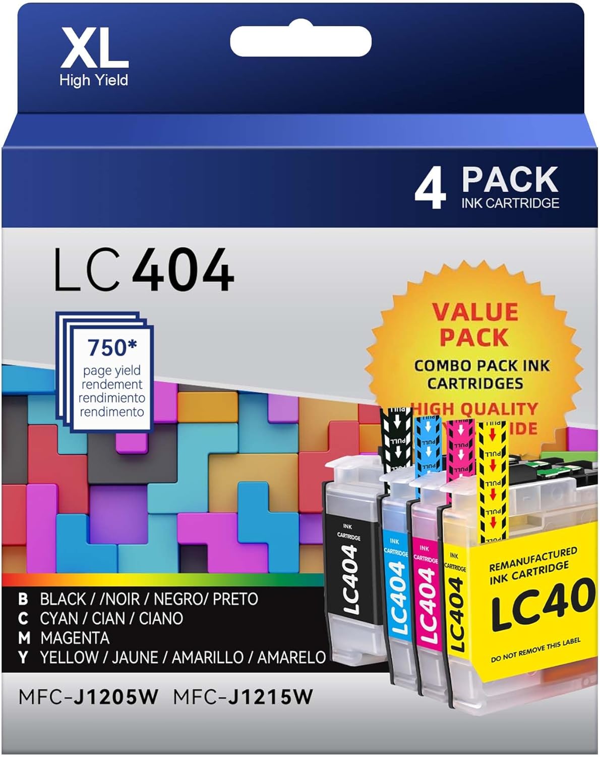 High-Yield LC404XL Ink Cartridge Set – Compatible Replacement for Brother MFC-J1205W, J1205W XL, and J1215W Printers, LC404 Standard Ink Alternative (4-Pack, Page Yield up to 750 Pages)