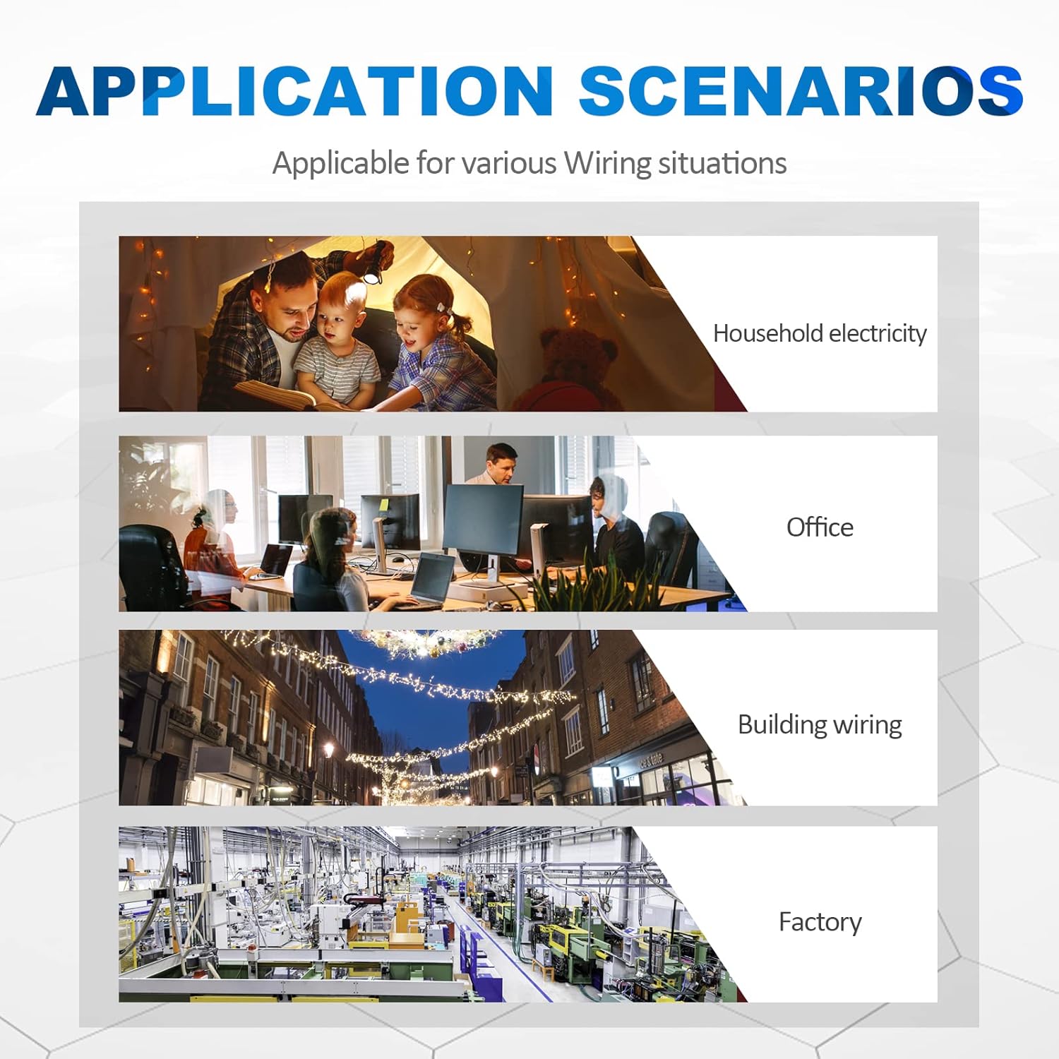 【Practical】 El conector de palanca es un innovador conector reutilizable. Si necesitas reemplazar otros cables, solo levanta el pequeño palanca, saca lo que necesitas y reemplázalos. El conector de cable adopta un diseño científico especial para ahorrar espacio. Cuando combinas cables, no tienes que preocuparte por la distorsión entre los cables. El uso interno de acero inoxidable asegura que los cables se mantengan firmes y no se suelten, ya que pueden ser reutilizados y los cables pueden ser removidos o reconectados varias veces.