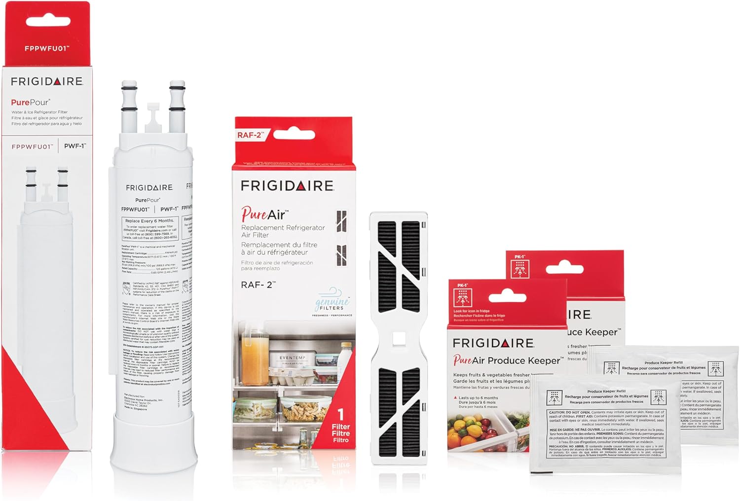Everything you need to enjoy great tasting water and keep your fridge fresher longer. Includes a replacement PurePour PWF-1 Water Filter (FPPWFU01), PureAir RAF-2 Air Filter (FRGPAAF2), and two PureAir Produce Keeper refills (FRPAPKRF).