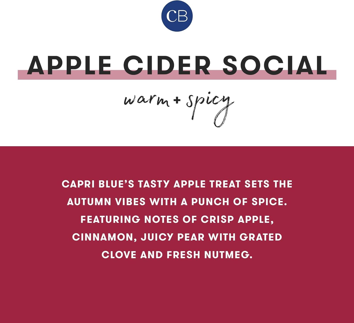 Capri Blue Apple Cider Social Holiday Mercury Signature Jar Candle (19 oz): Our mercury pearl etched jar candles are topped with a white gold lid and are sure to put you in the perfect mood for a festive party. Fill your space with our most delicious fragrance, Apple Cider Social! These holiday candles have notes of crisp apple, cinnamon, juicy pear, grated clove, and fresh nutmeg. Our all-natural soy candles for home scented with apple & cinnamon are formulated with a high-quality wax blend with a dash of food-grade paraffin wax to create long lasting candles with a strong fragrance and a clean burn. These pretty jar candles make wonderful housewarming gifts, Christmas gifts, or home décor gifts. --- Tips on Burning Your Luxury Candles: Always allow the top of the Capri Blue Apple Cider Social Candles to liquefy fully before blowing it out to avoid tunneling. Keep the wick trimmed to ¼” & trim wick before the 1st burn. (Caution: Don’t drop debris, like matches or wick trimmings into the wax. While burning, never place your decorative candles on uneven or sensitive surfaces or leave them unattended.) Blow out when ½” wax remains to avoid exposing the bottom of the wick. Repurpose these glass candle jars in fun and exciting new ways! --- About Us: Capri Blue is an intersection where fashion meets fragrance. Inspired by contemporary fashion trends, Capri Blue creates exciting new home fragrance products for every season.