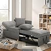 SEJOV Sofa Bed 4-in-1 Convertible Sofas & Couches, 3-Seat Linen Fabric loveseat Sofa with 2 Throw Pillow, Single Recliner for Small Space with 5 Adjustable Backrest, Dark Grey