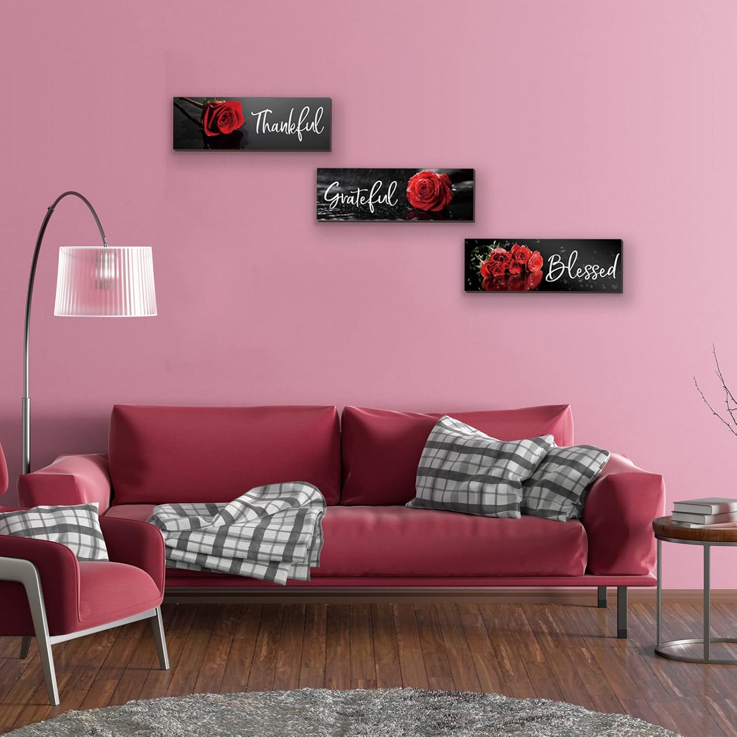 Positive Quotes: Our red decor for women is exquisitely printed with positive art words [Thankful Grateful Blessed], along with the warm words to bring you encouragement, comfort and confidence, this red wall art full of positive atmosphere, make people feel more alive and passionate in both life and work