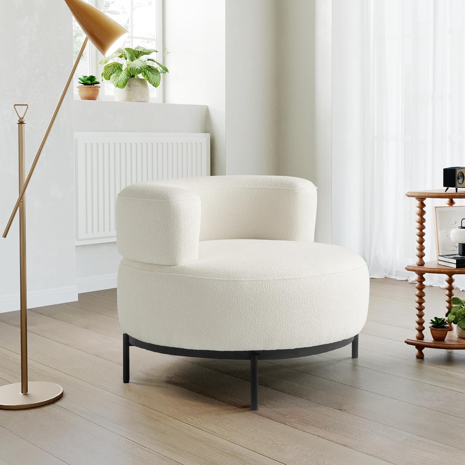 ELEGANT MODERN DESIGN - Stylish barrel armchair silhouette in smooth wool-like upholstery complements any contemporary space. Perfect accent chair for living rooms, bedrooms, offices, or small areas.