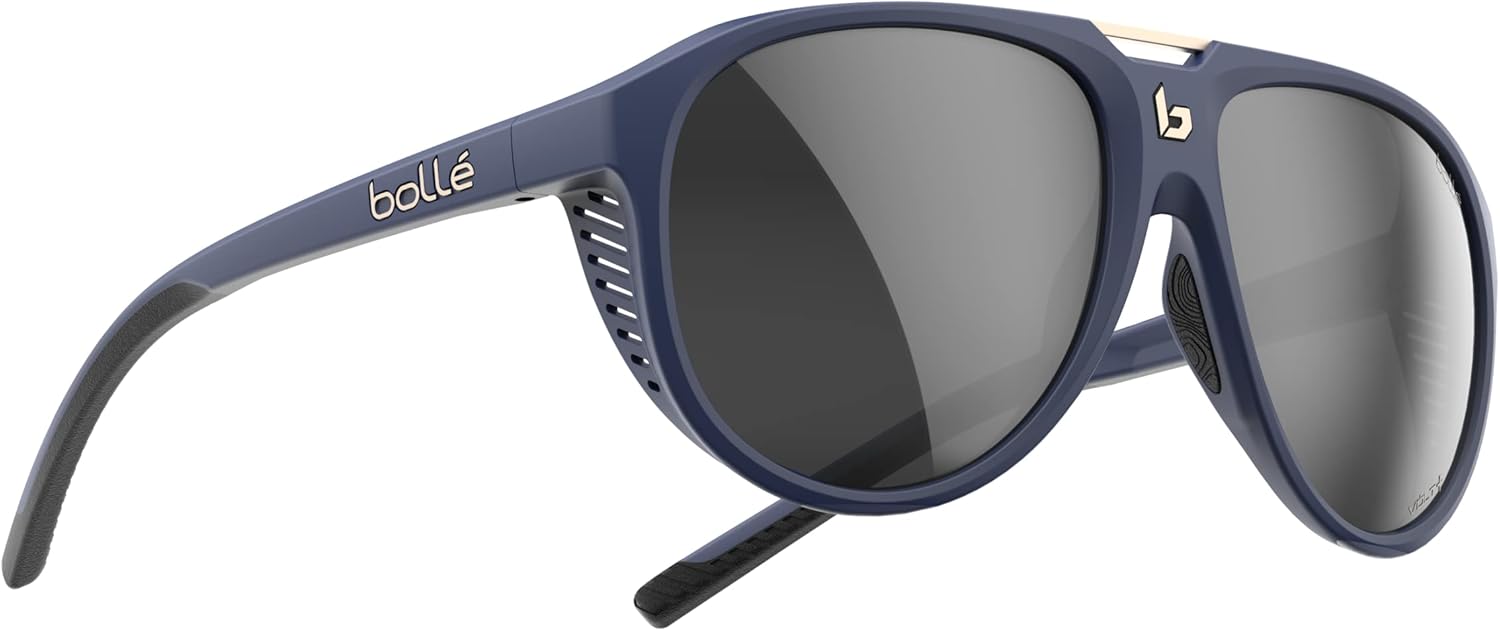 New model within the sports lifestyle collection, the EUPHORIA is a round pilot frame. Inspired by the mountain environment, the EUPHORIA presents a retro yet sophisticated look with an oversized design. Elegant and refined, this model also stays true to Bollé’s sports DNA with snap hinges and Thermogrip® on both temple tips and the nose piece. The metal top bar and the integrated side shields with perforated pattern give a nice touch to the frame showing the importance given to every detail. Also a part of our React for Good campaign, the EUPHORIA is made of 45% bio-based material. Available with Volt+, Bollé’s revolutionary high contrast and polarized lens.