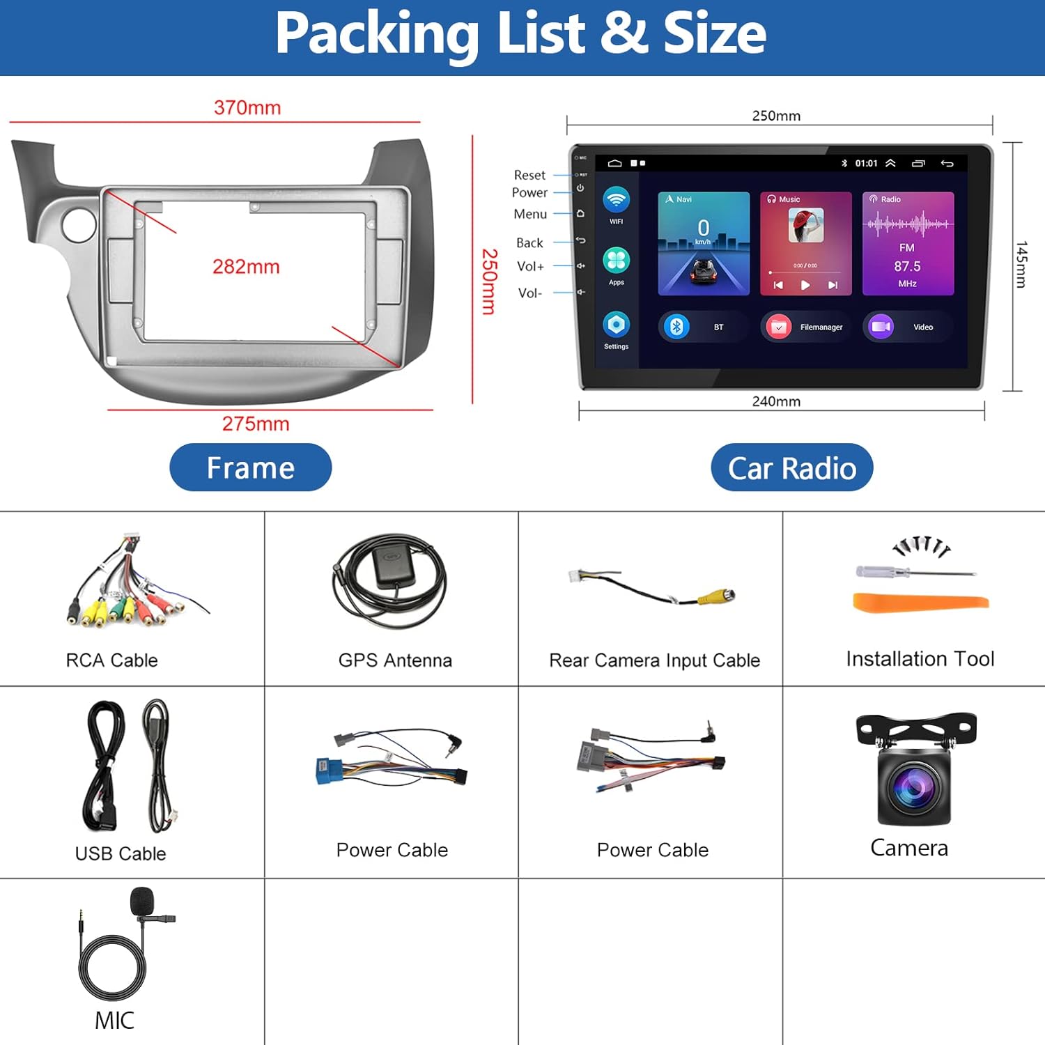 【Built-in DSP】 Car Stereo for Honda Fit 2008-2013 Radio,CarPlay Android Auto,GPS Chip WiFi MirrorLink 5.0Bluetooth FM/RDS 26UIs Split Screen SWC AHD Backup Camera 2G+32G