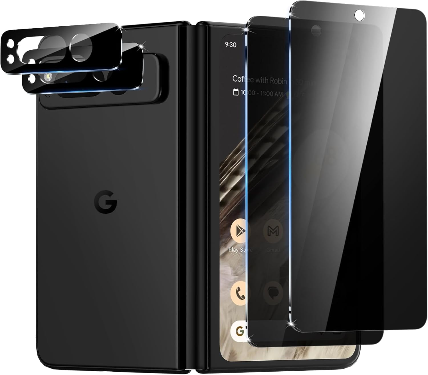 【Note Before Buying】 Package includes 2 pack compatible google pixel fold 5G privacy screen protector tempered glass and 2 pack camera Lens protector.