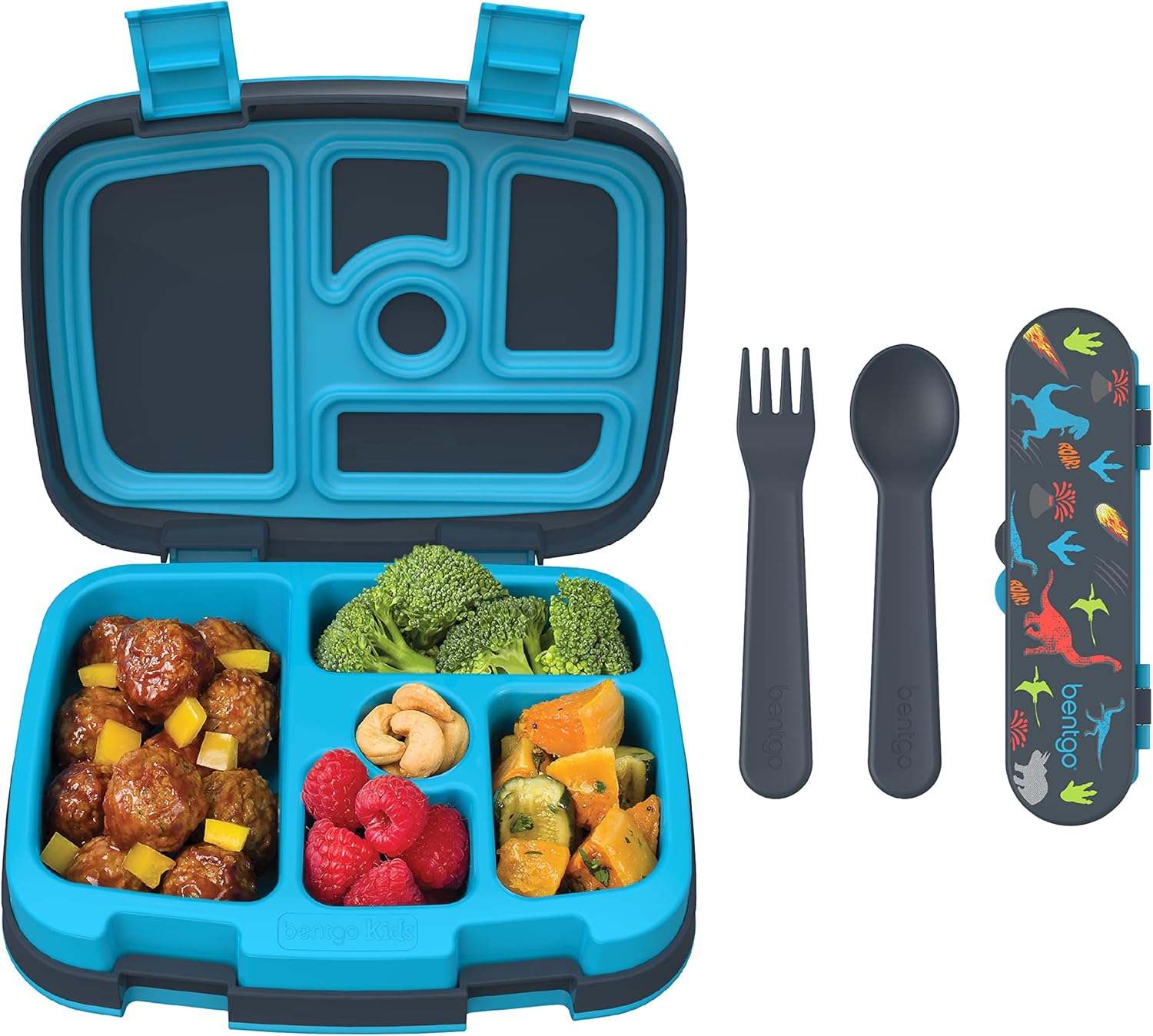 Bentgo® Kids Prints 5-Compartment Bento-Style Kids Lunch Box Set with Reusable Plastic Utensils (Dinosaur)