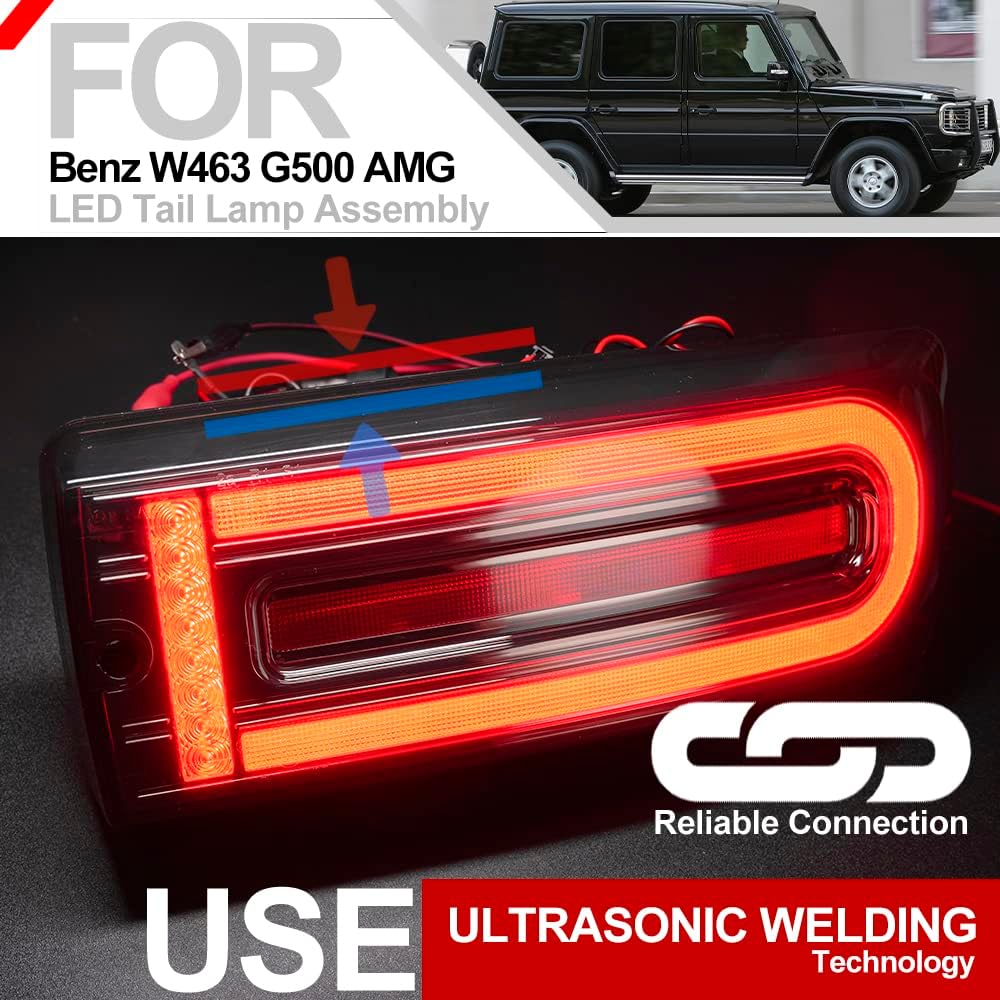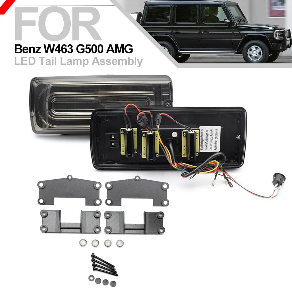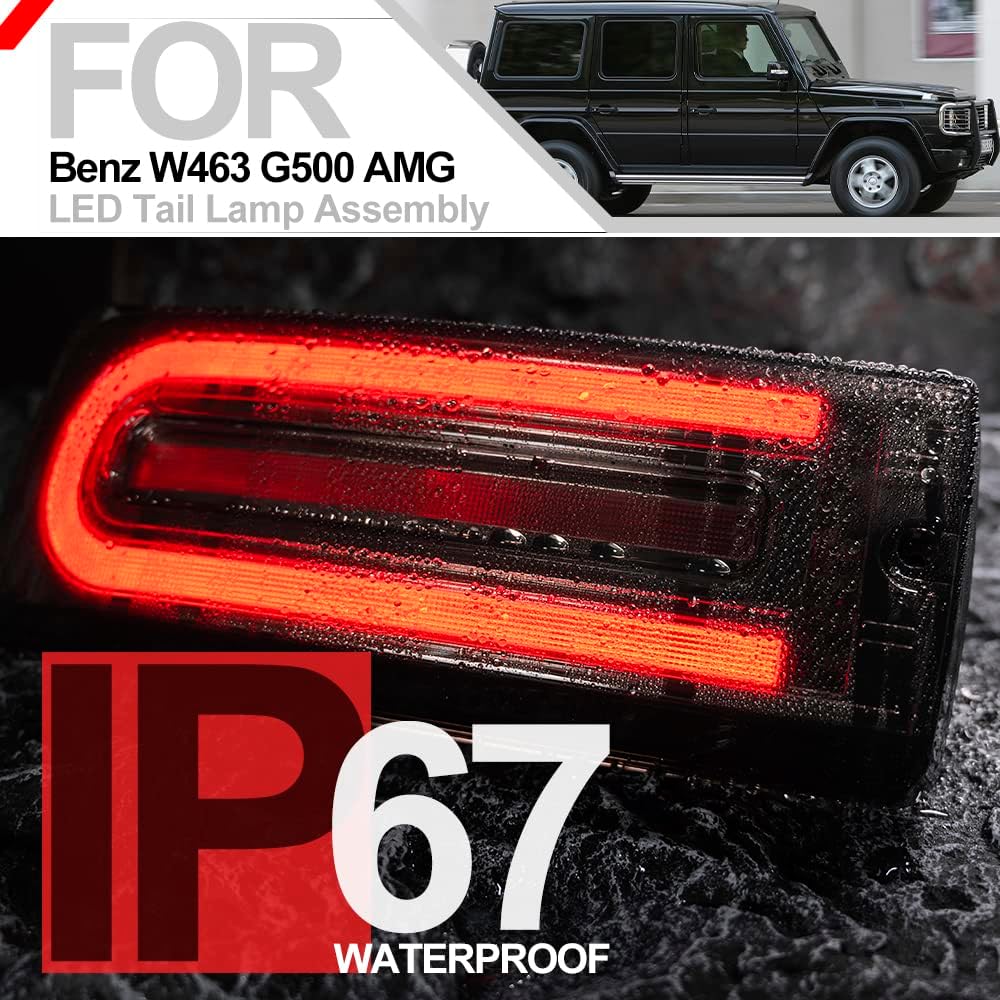 LED Dynamic Tailights Turn Signal Lights Assembly Brake Running Lamps for Be'nz G-Class W463 G500 G550 G55 G63 AMG 2002-2018 Tail Lights Passenger and Driver Side Smoked Lens Packing Includes: 2X LED Tailights Assembly 2PCS=1SET Features: 1.Lens Color: Smoked 2.Led Color: Red/Amber 3.Super bright,faster on/off response time for driving safety. 4.3X brighter than the stock filament bulb tail lights. 5.Brand new and high quality. 5.Three functions: Brake light, Running light, Dynamic trun signal light. Fitment: compatible with 2002-2018 Be'nz G-Class W463 G500 G550 G55 G63 AMG OEM PART NUMBER: A4638200964 A4638201064 A4638201364 A4638201464 A4638201564 A4638201664 A4638201964 A4638202064 Note: Please allow 1-3mm error due to manual measurement. The real color of the item may be slightly different from the pictures shown on website caused by many factors such as brightness of your monitor and light brightness.
