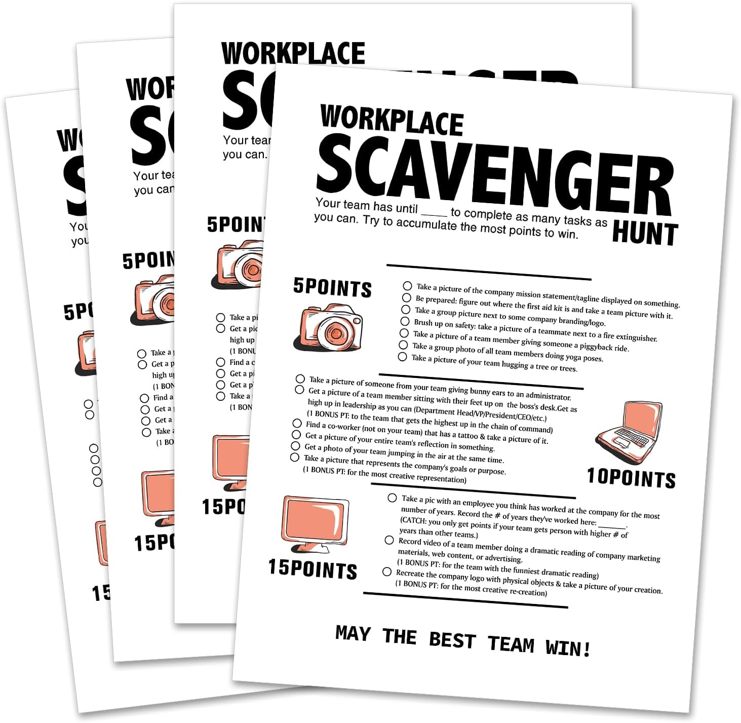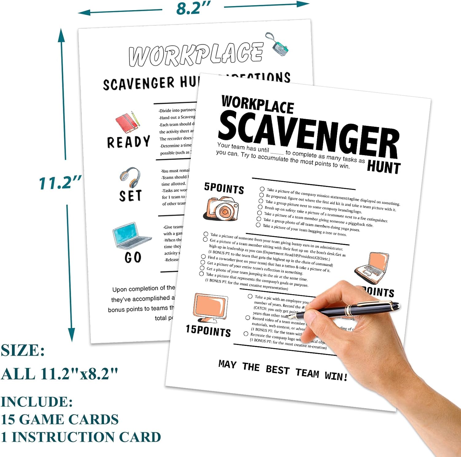 Este es un juego de tema de fiesta de oficina, que incluye 1 guía de búsqueda del escavader en el lugar de trabajo, 15 tarjetas de búsqueda del escavader en el lugar de trabajo, el tamaño es 8X11 pulgadas.