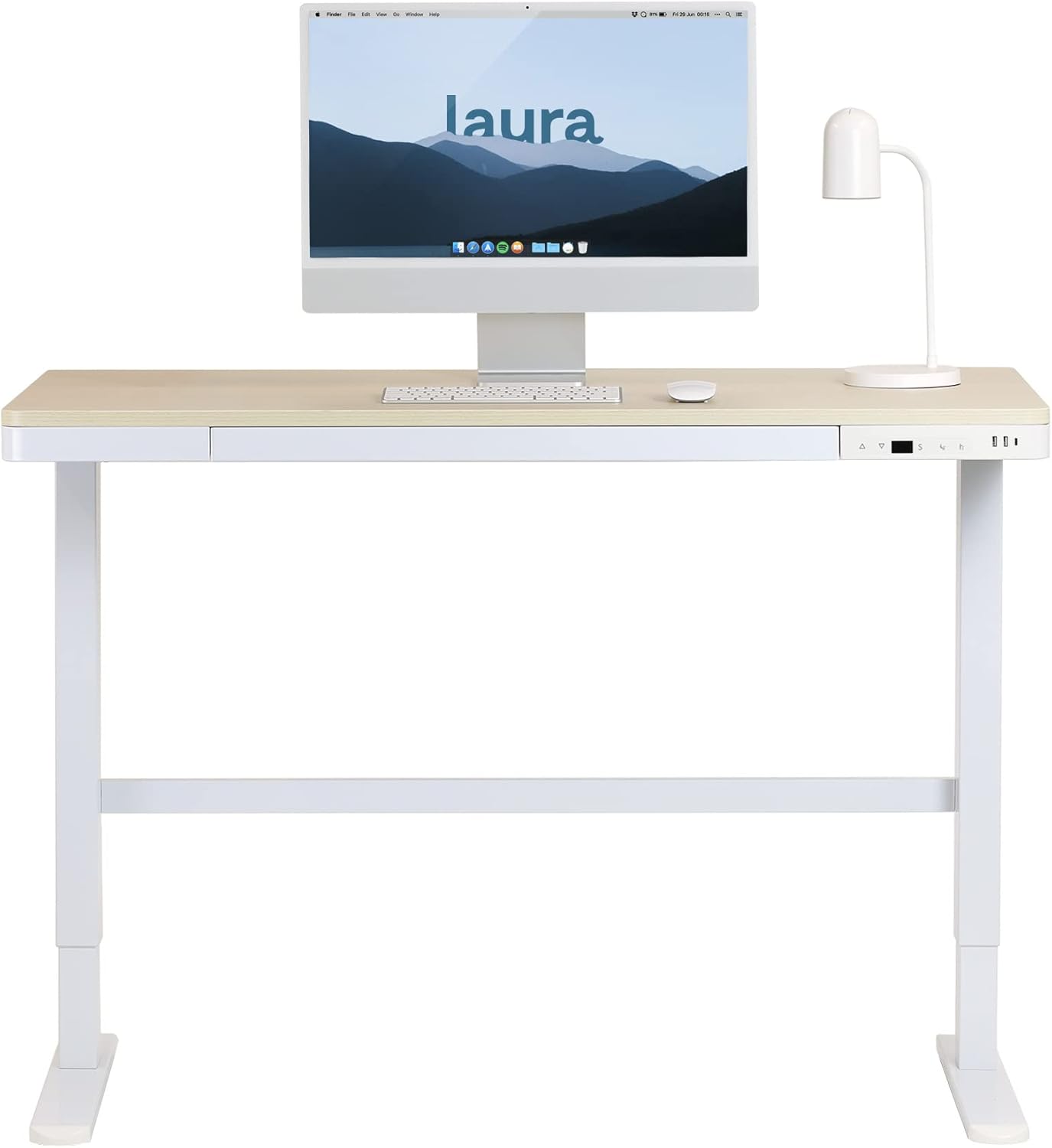 Laura Davidson Furniture Liberty Adjustable Electric Standing Desk, Stand Up Desk and Sit Desk with Memory Presets and Drawer, Home Office Desk, Computer Desk, (White with Oak Top)