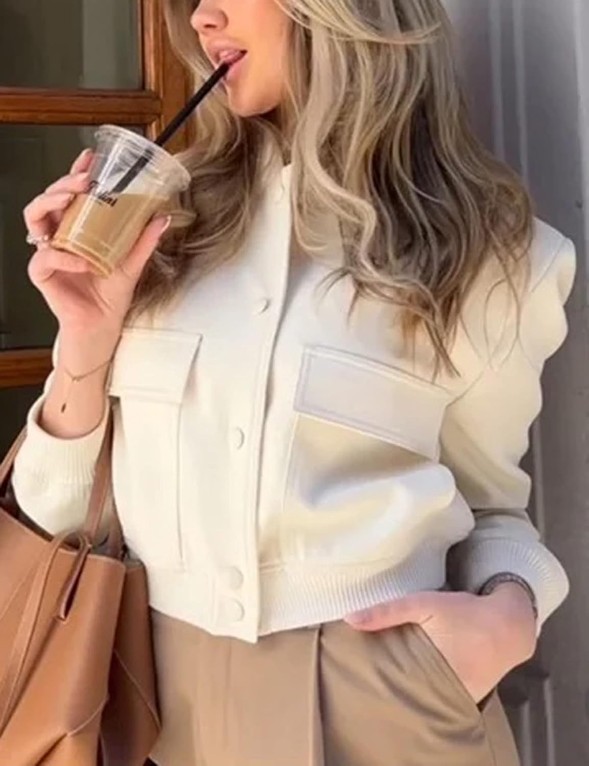 Lumister Women's Fashion Cropped Button Down Lightweight Cropped Bomber Jacket Varsity Shacket with Side Pockets