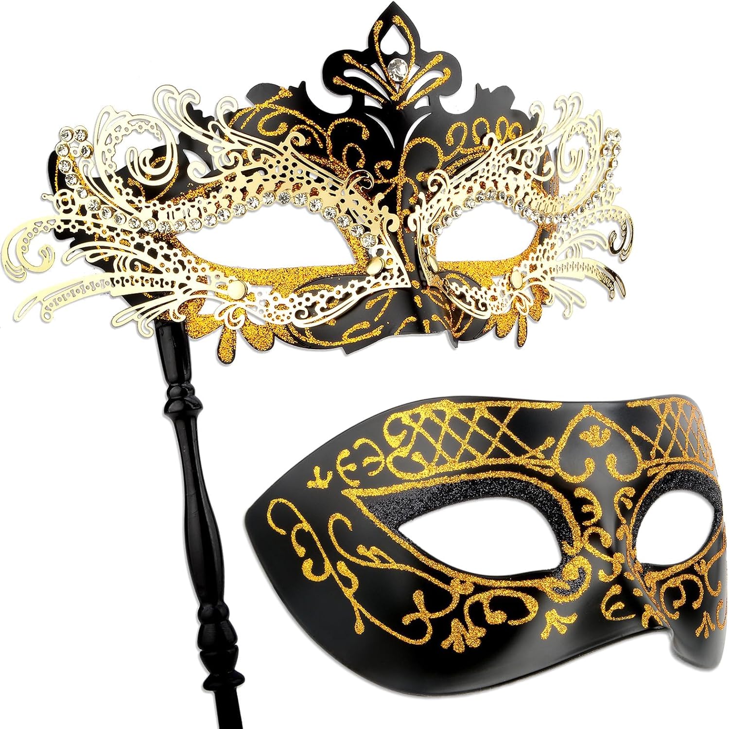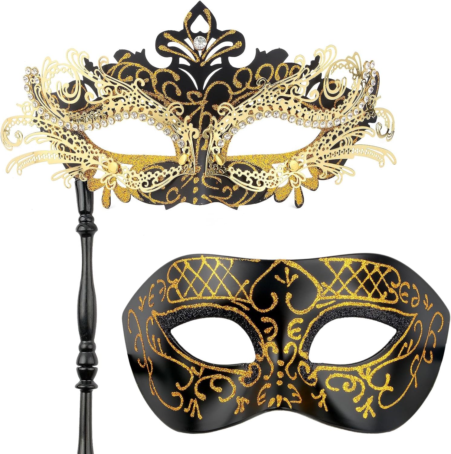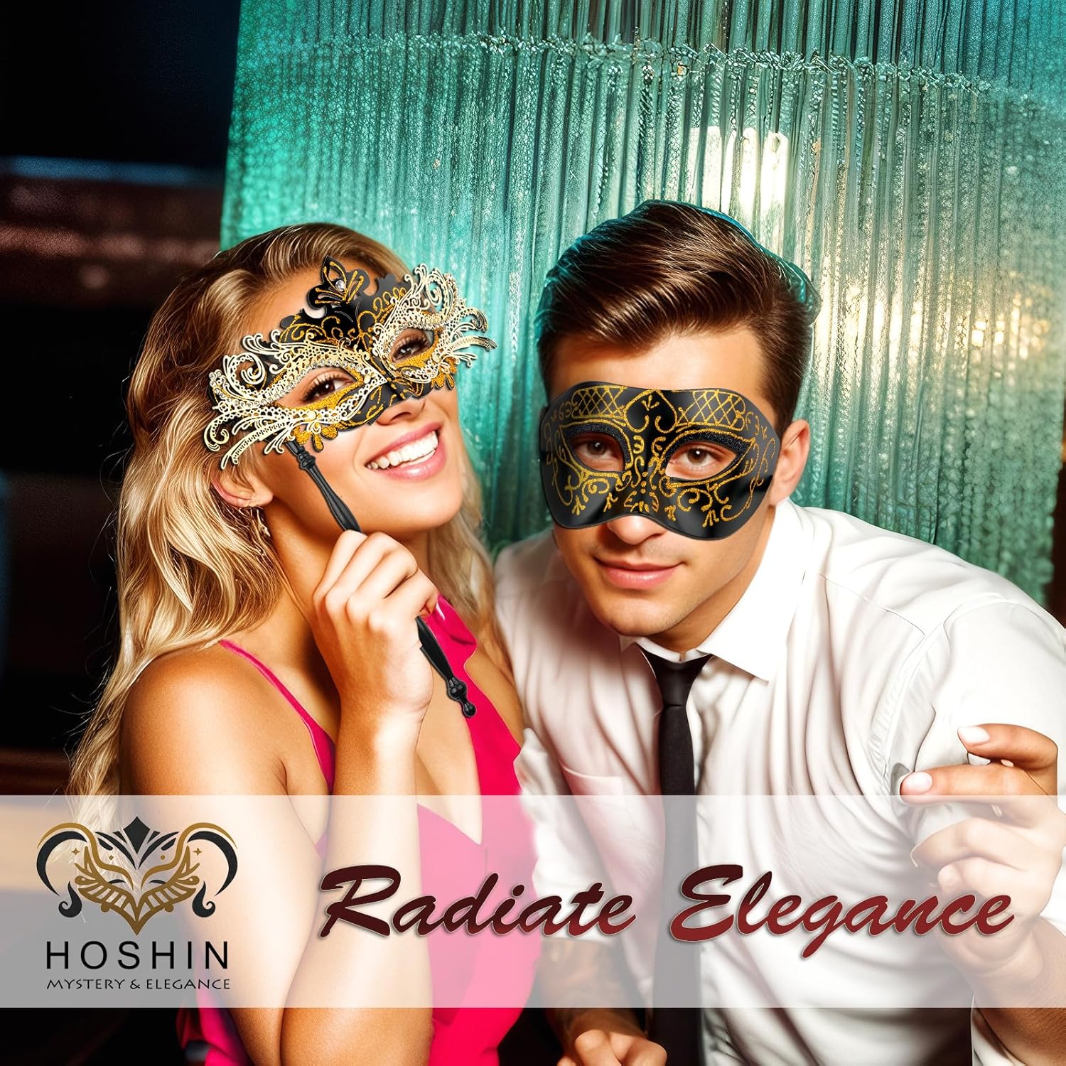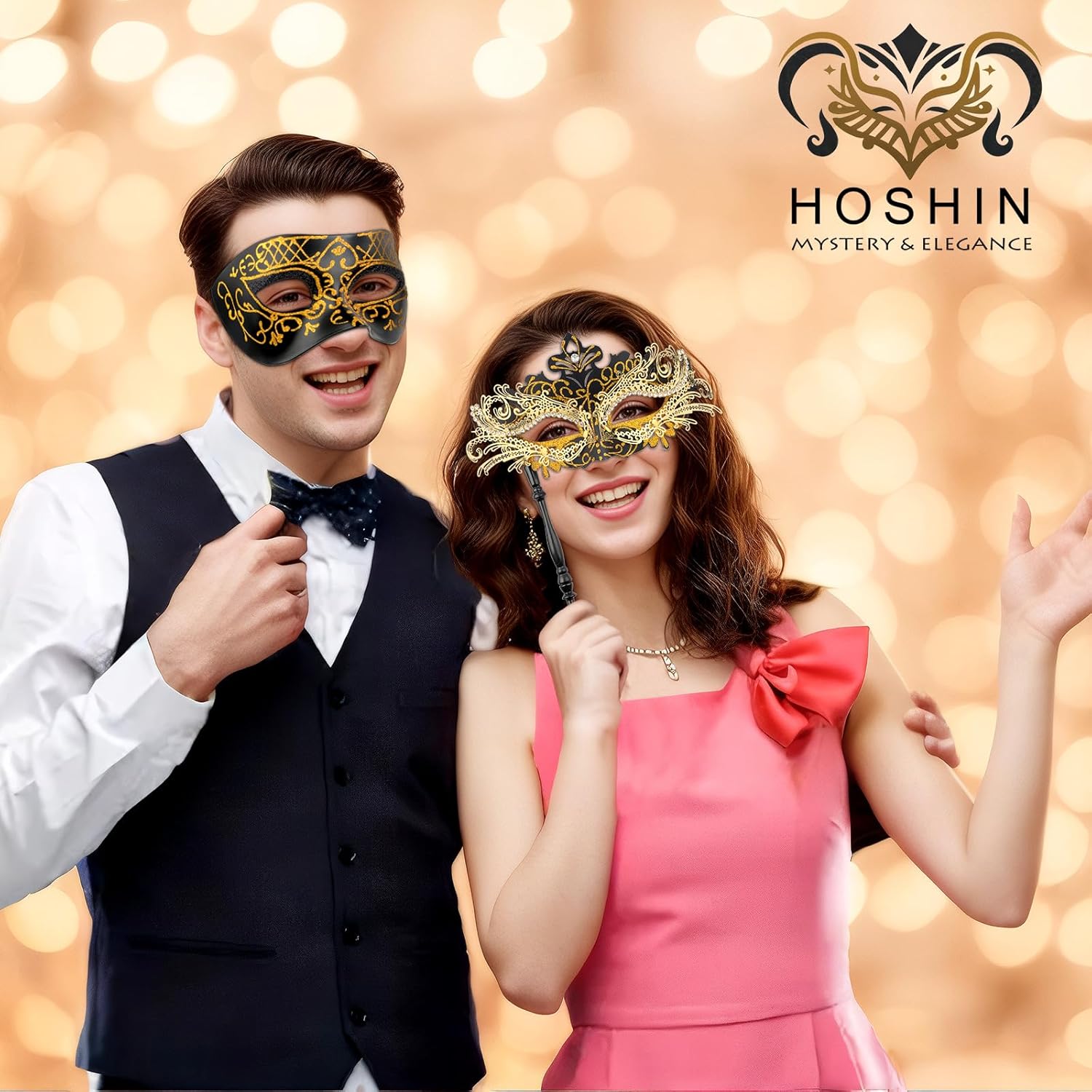 Hoshin Masquerade Mask for Couple, Mardi Gras Deecorations Venetian Masks with Stick for Womens