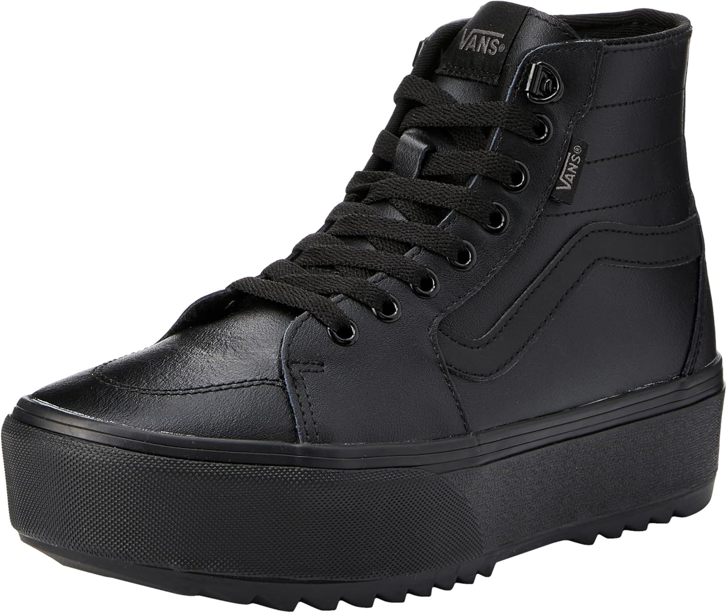 Inspired by Vans Classic Sk8-Hi Stackform, the Filmore Hi Tapered Platform ST is a high top, vulcanized lace up style with Vans signature side stripe, a round toe, elevated platform height, a slim deconstructed collar and a sawtooth rubber outsole.