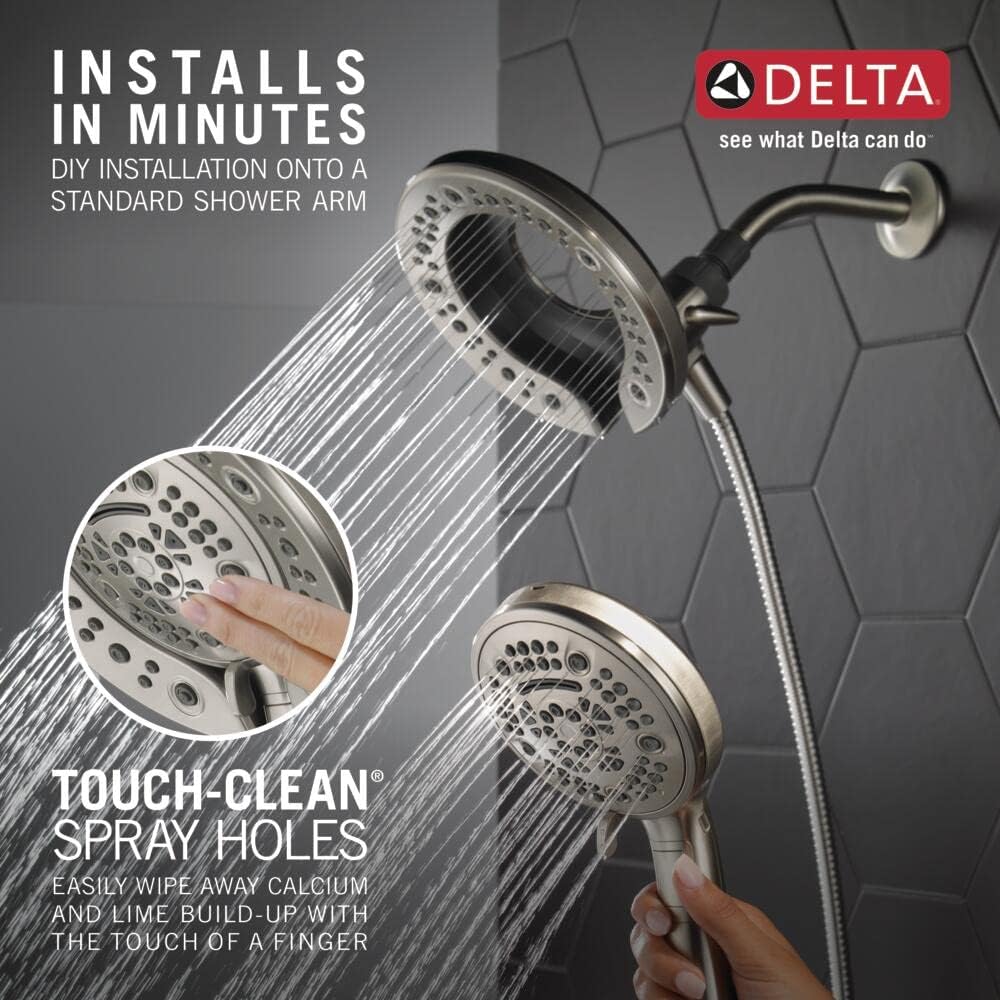 Delta Faucet 7-Setting In2ition Dual Shower Head with Handheld Spray, Brushed Nickel Shower Head with Hose, Showerheads & Handheld Showers, Handheld Shower Heads, Satin Nickel 75687DSN
