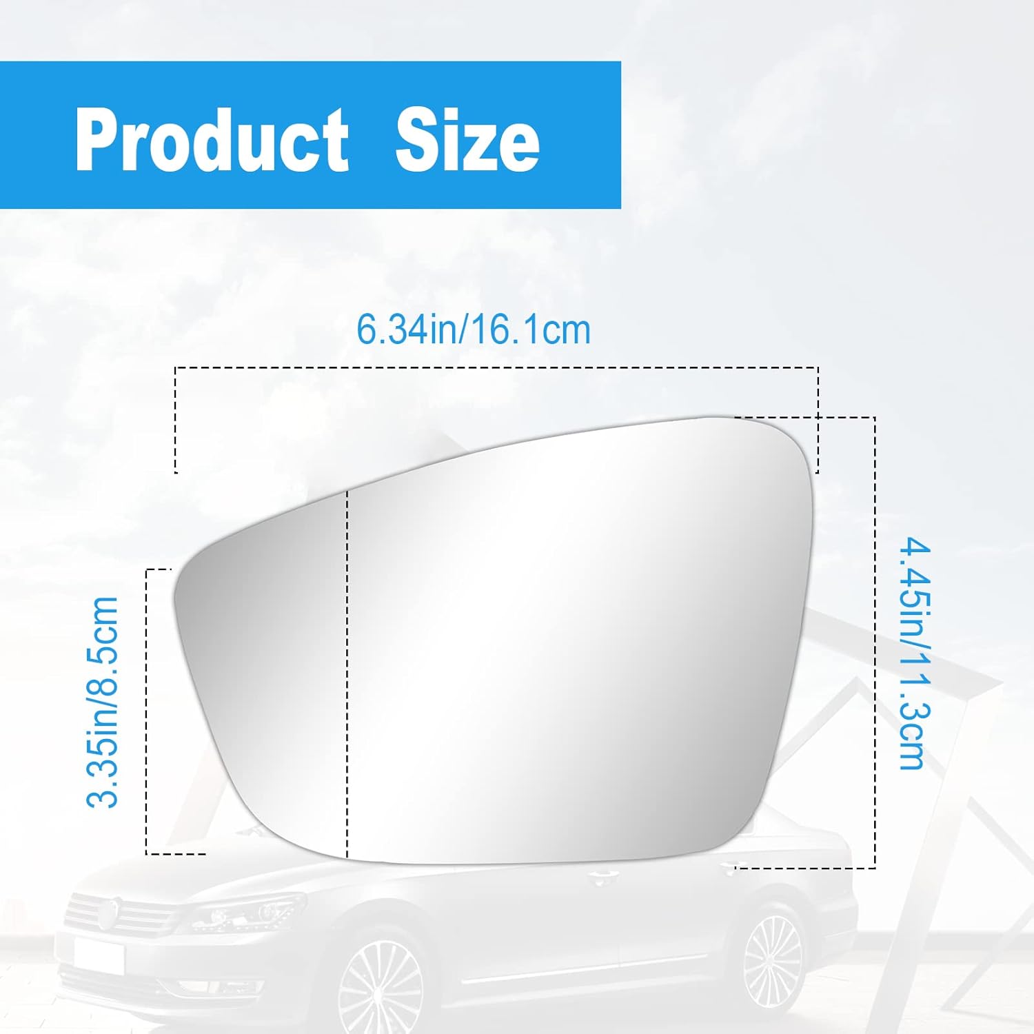 Left Driver side View Heated Mirror Glass Replacement for 2011 2012 2013 2014 2015 2016 2017 2018 Volkswagen VW Passat Jetta Beetle Side Mirror Glass With Rear Holder