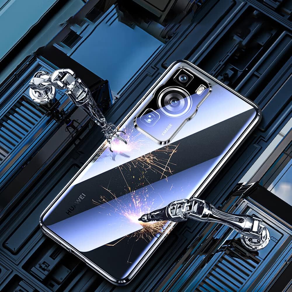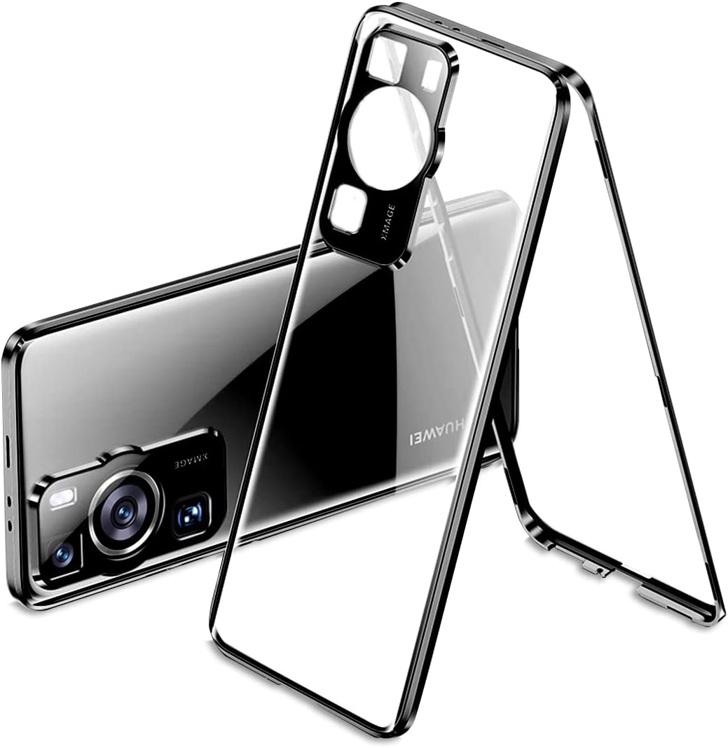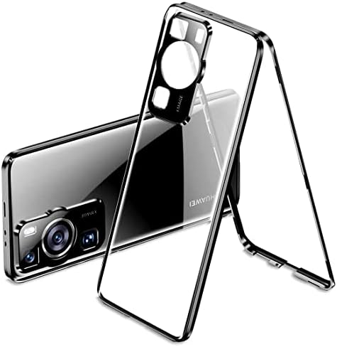 Funda QUIETIP para Huawei P60 Pro, Marco de metal magnético de doble cara con vidrio templado transparente a prueba de golpes con protección de cámara delgada, negro
