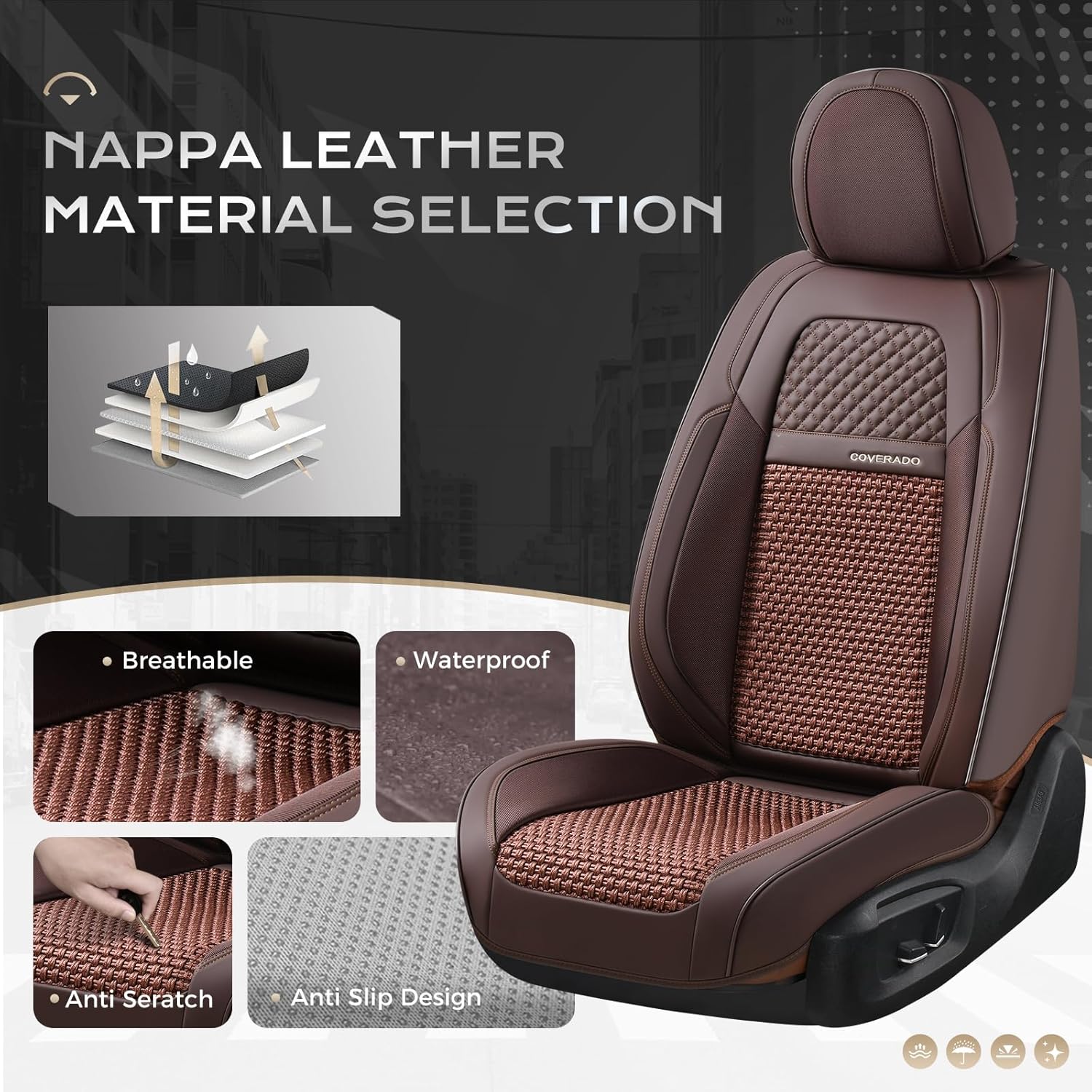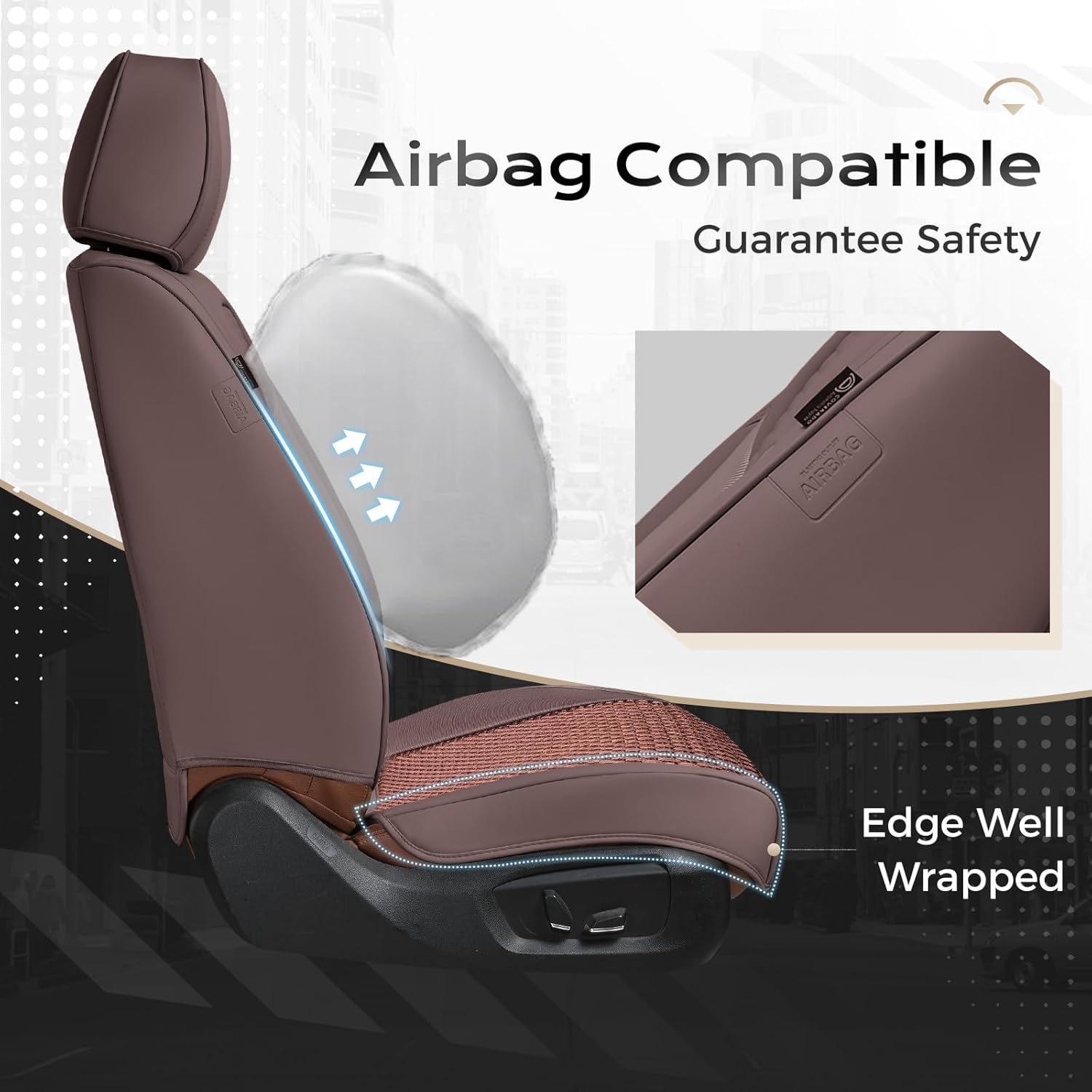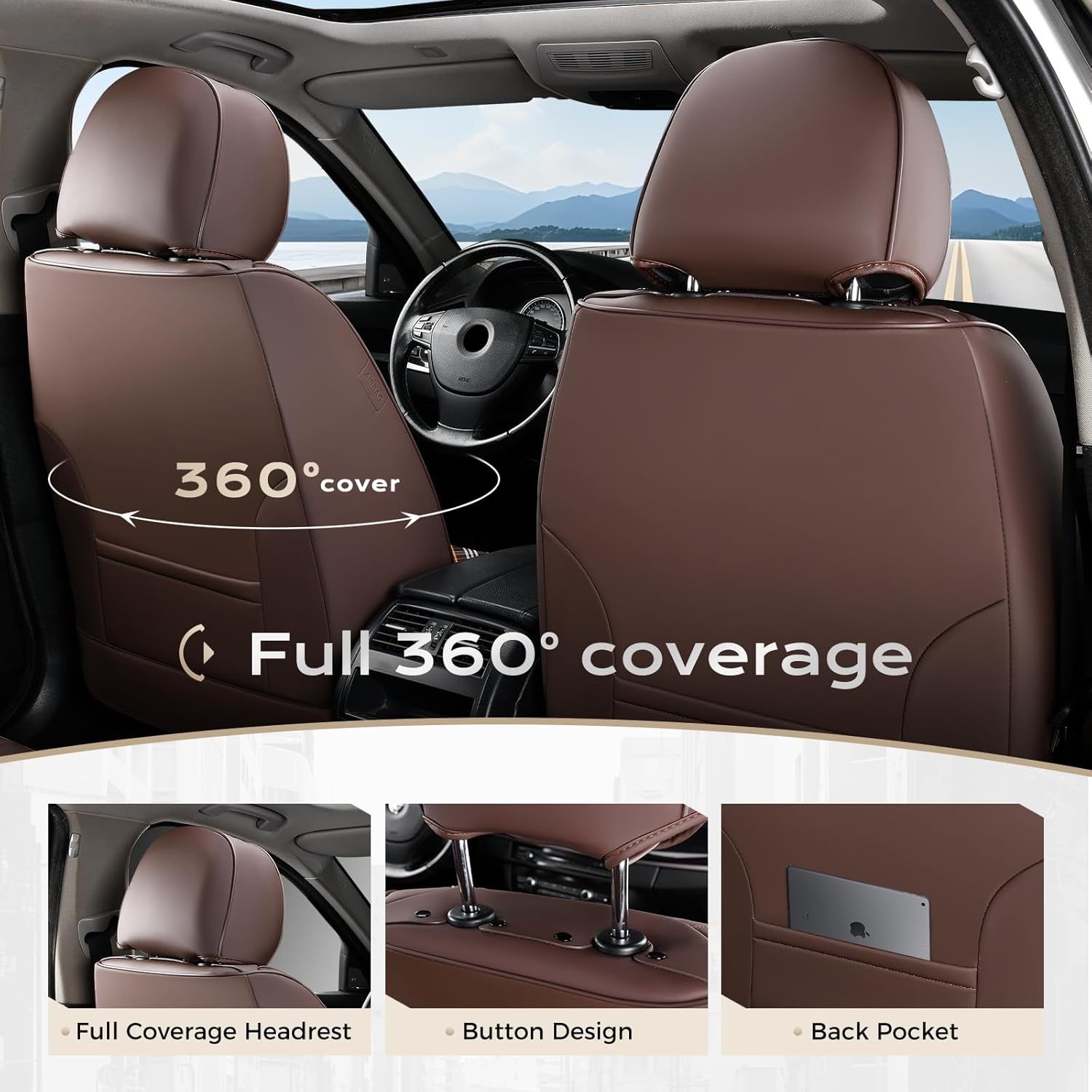 Coverado Leather Seat Cover Front, Universal Covers for Cars, Waterproof Luxury Leatherette Seat Cushions, Auto Car Seats Protectors, Driver Seat Cover Fit for Most Vehicles-Brown