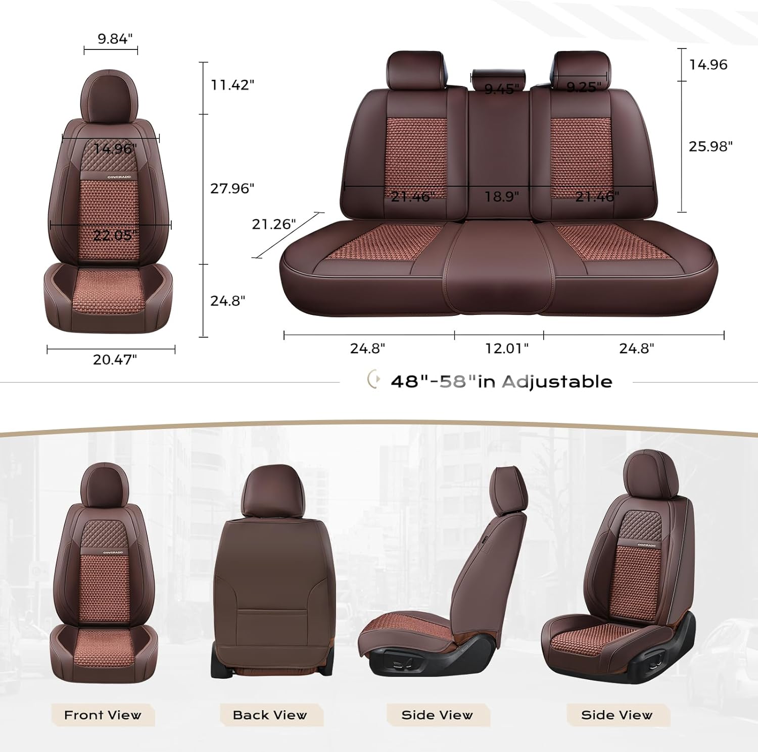 Premium Materials: Super Breathable Series cubre asientos para autos are constructed with durable faux leather and special woven fabric center sections. Soft padded protection, non-slip design and easy to clean. You can maintain them easily by wiping them with a wet towel