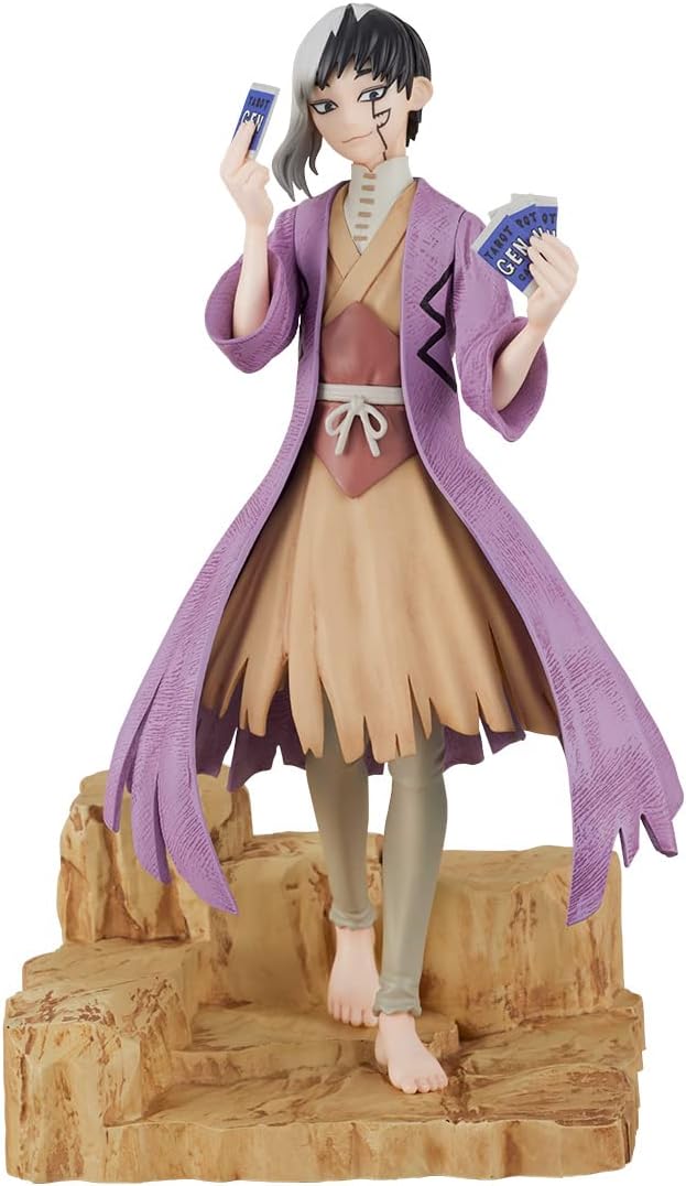 From FuRyu. Gen Asagiri from the TV anime Dr.STONE is now available as a figure! Based on the image of a scene in which playing cards are used to draw lots for the members of a balloon ride, Gen Asagiri, a magician/mentalist who specializes in psychological magic is now available as a TENITOL figure. Is the playing card in Gen's hand really a winning joker or...? Joker playing card is included as an optional part.