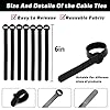 200PCS Reusable Fastening Cable Ties, 6-Inch Cable Straps Cable Management, Multi-Purpose Hook & Loop Cord Organizer Wire Ties, Adjustable Cable Organizer Cord Ties, Microfiber Cloth Straps, Black