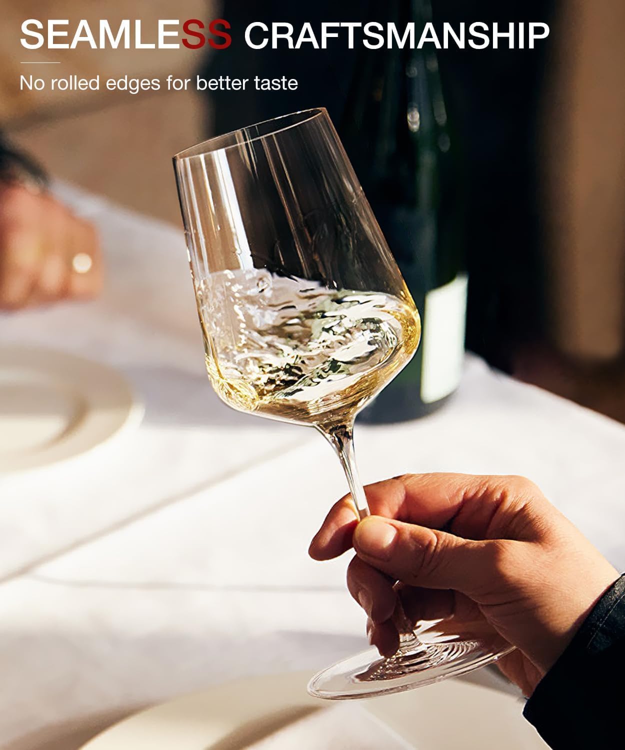 SEAMLESS CRAFTSMANSHIP: Wine glasses are crafted using a seamless process, with no rolled edges that can interfere with the taste of your wine. you'll be able to fully appreciate the complex flavors and aromas of your favorite reds