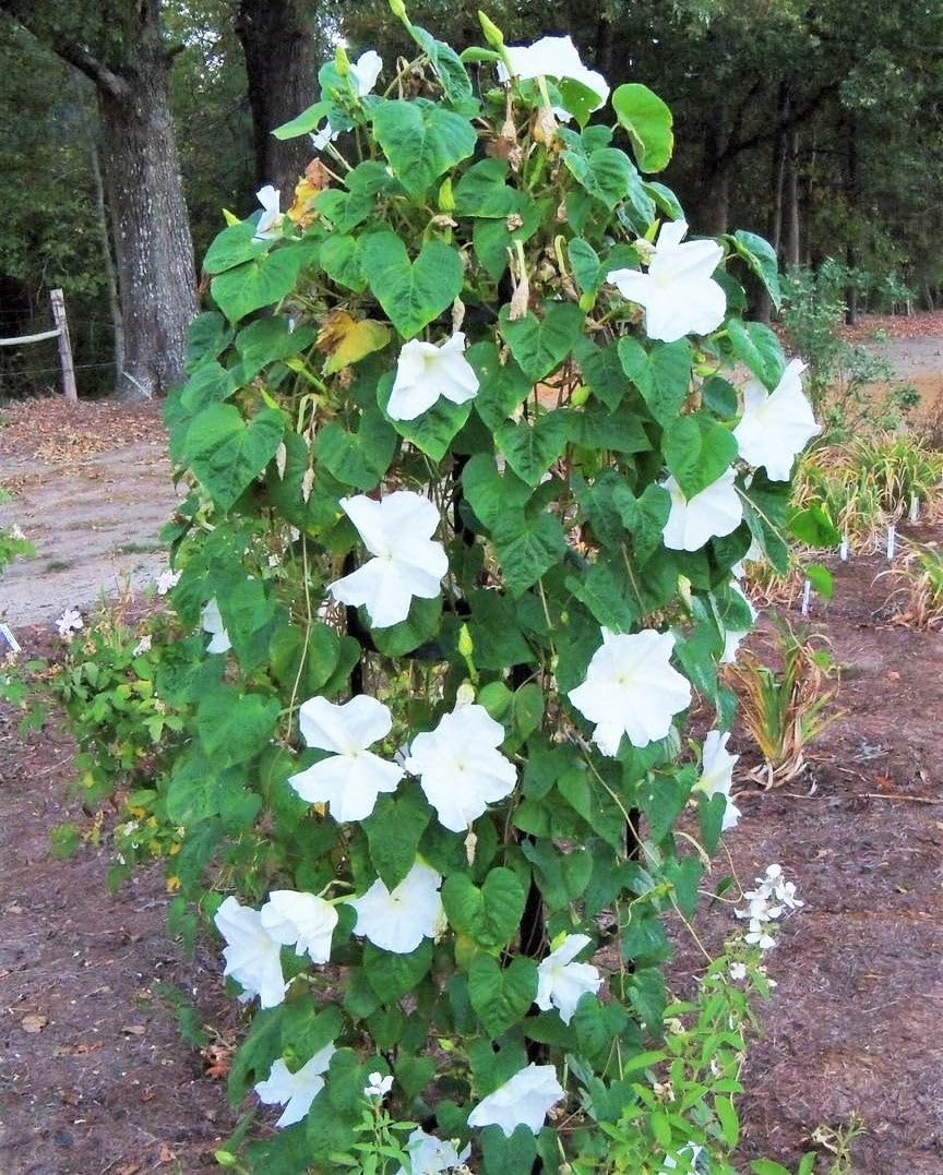 Moonflower is a stunning, night-blooming vine with large, fragrant white flowers that blooms as dusk falls. The full-moon-sized blooms can reach up to 6 inches across, and their soft, luminous appearance against the darkening sky is truly a sight to behold. This tropical white morning glory is native to tropical and subtropical regions of North and South America, where their perfume-like fragrance attracts pollinators and enriches the ecosystem. Moonflowers are fast-growing climbers, making them perfect for trellises, fences, or arbors, where they can quickly cover and transform any vertical space into a gorgeous, fragrant display. Their beauty extends beyond the blooms, with lush, heart-shaped leaves that provide a lush green backdrop, making Moonflowers not just a flower, but a stunning focal point in your garden. The low-maintenance nature of Moonflowers, coupled with their ability to thrive in full sun and poor soil conditions, makes them an easy and rewarding addition to any garden. Also Known As: Ipomoea Alba, Giant White Moonflower, Tropical White Moonflower, Evening Glory, Queen of the Night, Moon Vine, White Morning Glory, Moonflower Vine, Bridal Veil, Devil's Trumpet.