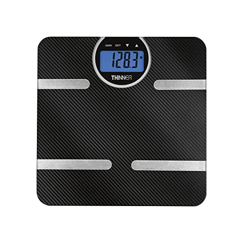 Thinner by Conair Scale for Body Weight, Digital Bathroom Scale with Body Fat, Muscle and BMI in Black